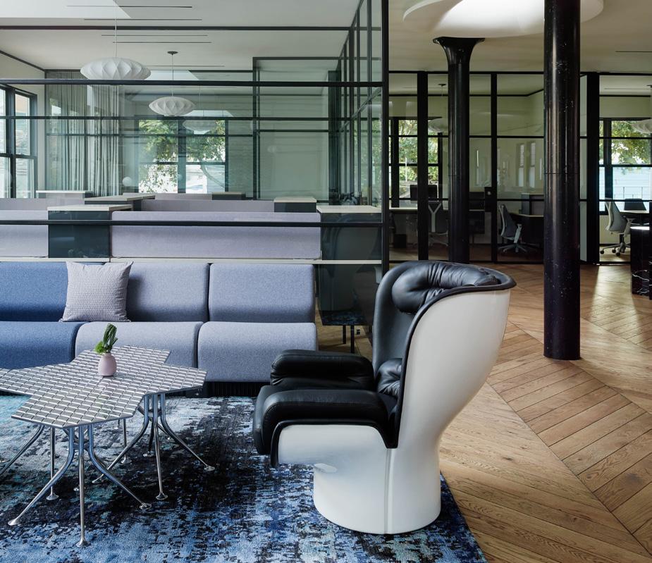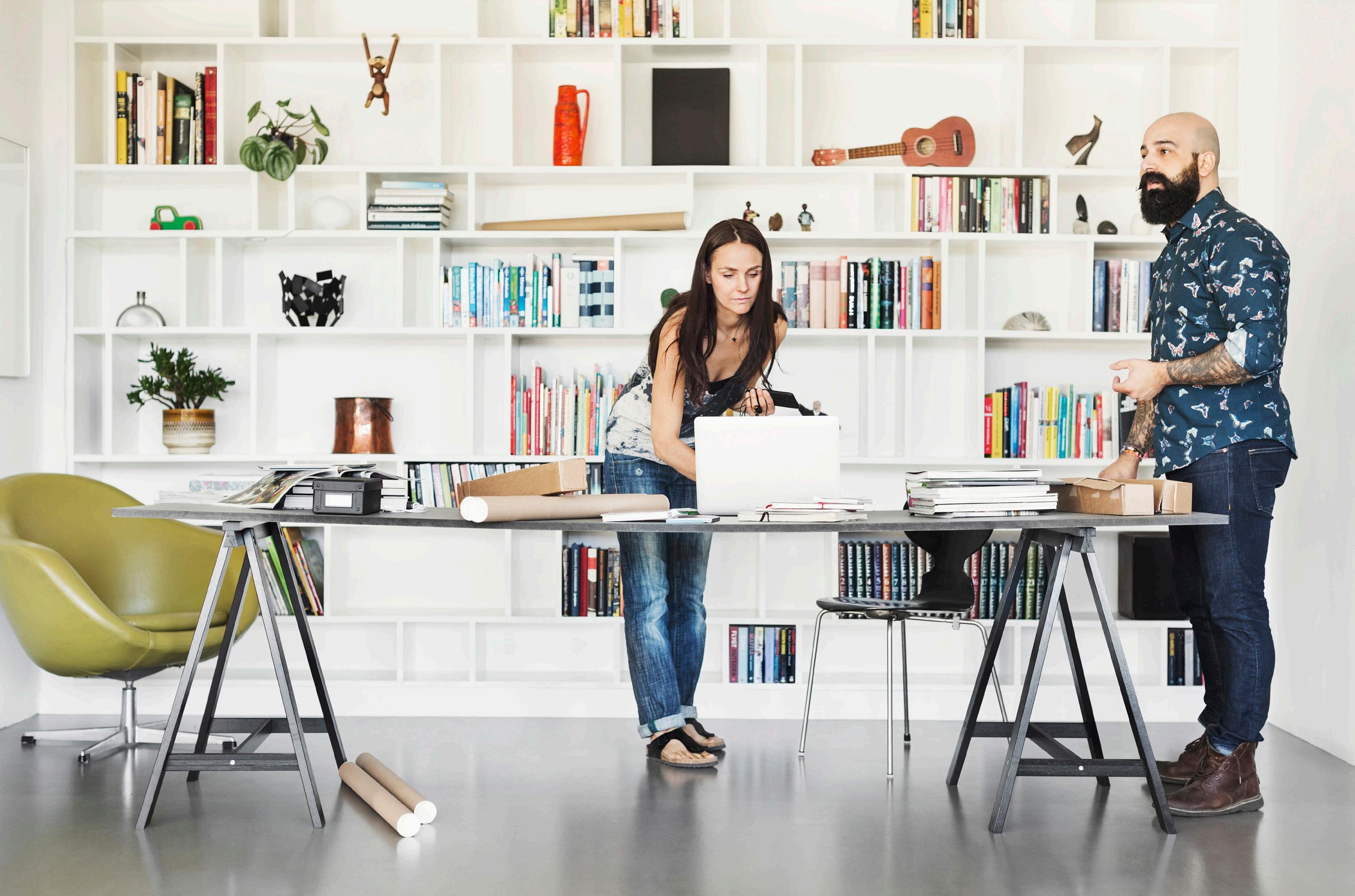 Desk, Muuto, muuto.com. Oslo Sofa, Muuto & Anderssen & Voll. Executive chair, Herman Miller, hermanmiller.com. Artwork, “Night Ride,” 2015, Matthew Palladino, matthewpalladino.com.