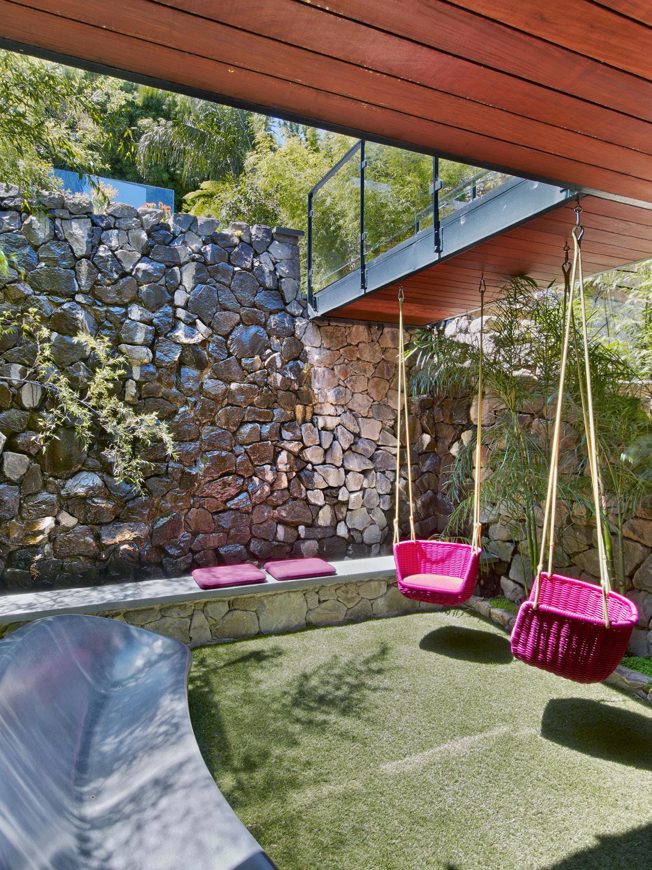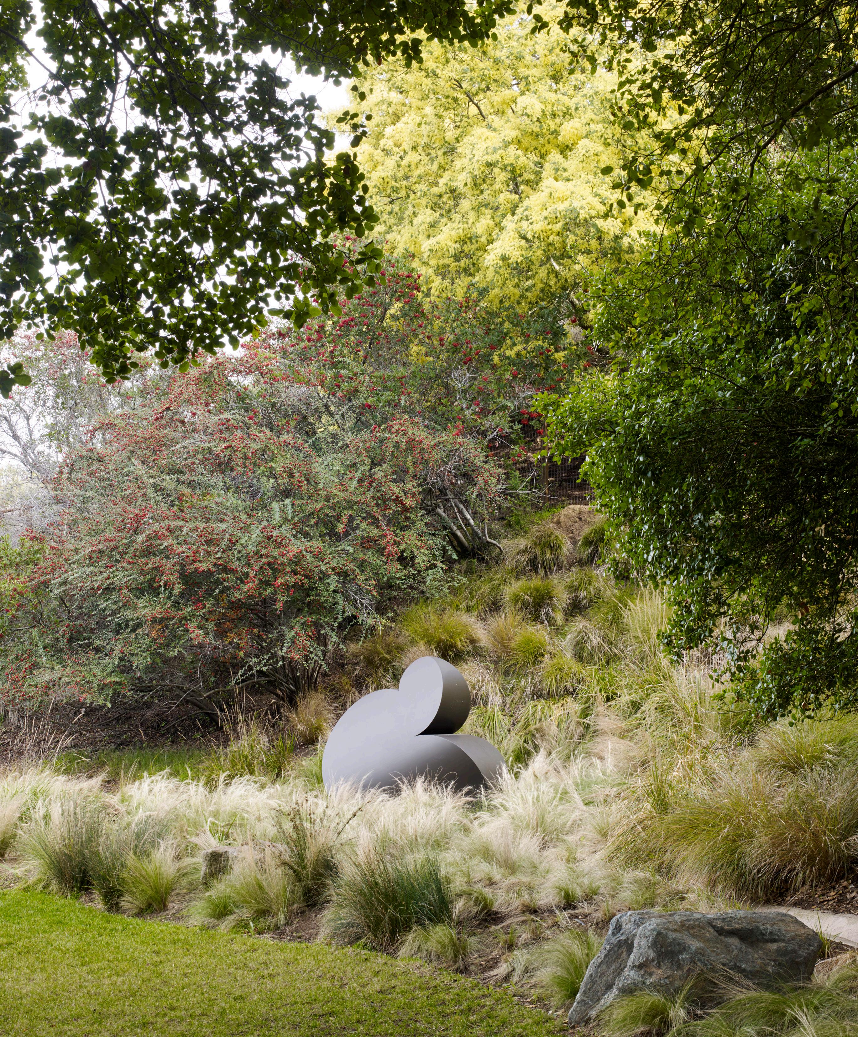 To the owners’ delight, these uncommon wonders captivate the children more than their slides and swings do. “According to Gina, the kids love to run and play in the garden and clamber on top of the earth forms and conjure up their own worlds,” Wyllie says. “They like to use their imaginations.” n