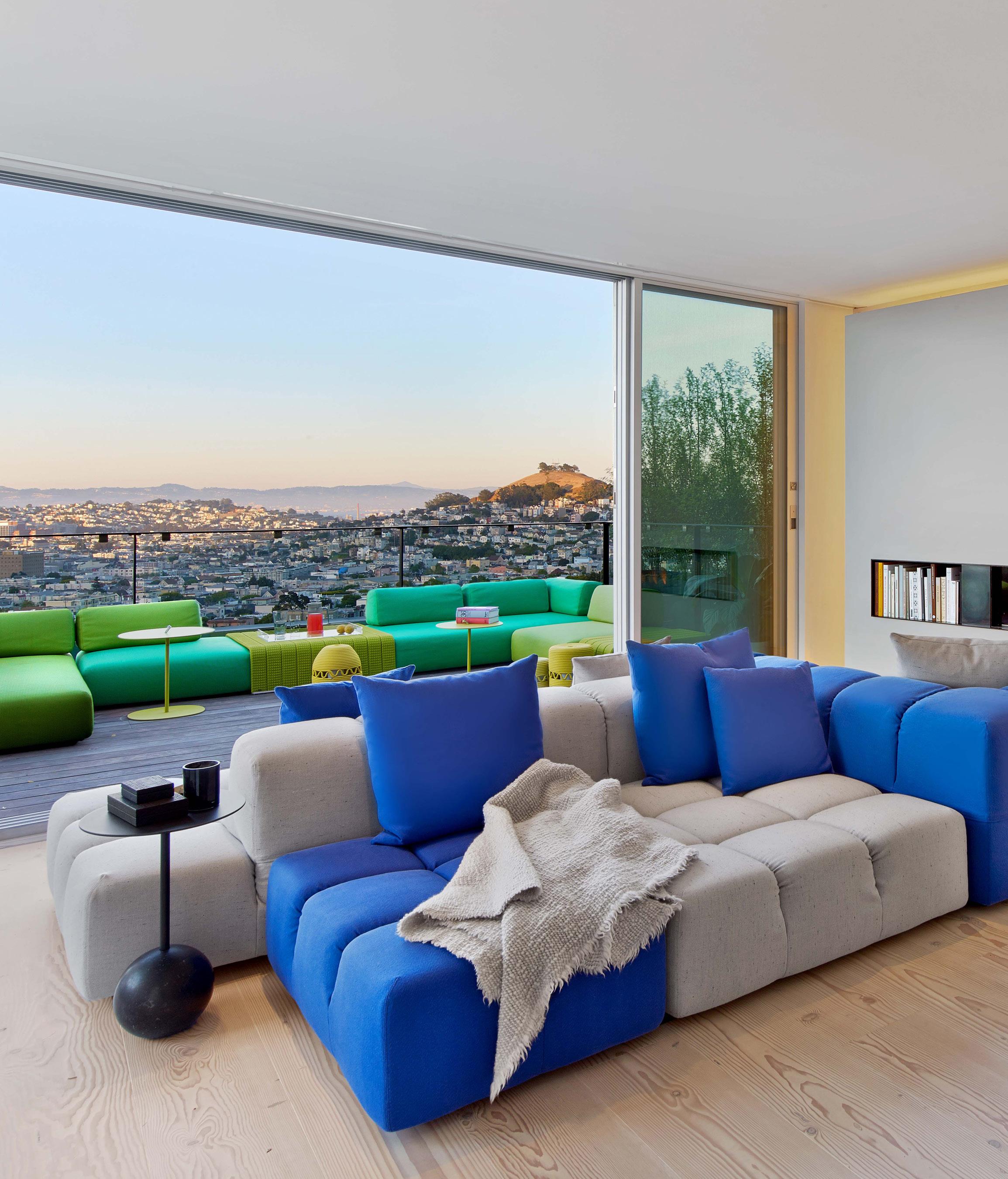 DECK Sliding door, Norwood EX 3070-Series, Fleetwood. Outdoor furniture, Orlando Sofa System, Strap side table and Frame outdoor low table, Paola Lenti. Office, Muuto 70/70