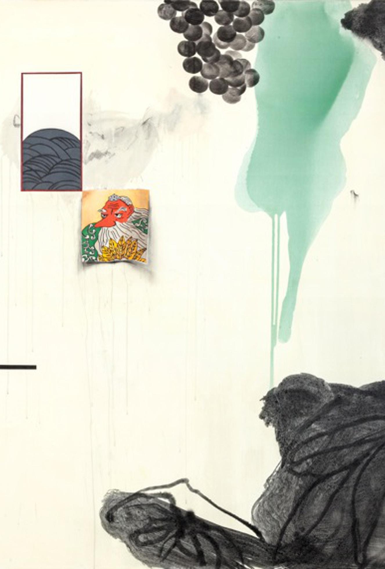 In the process, the artist took advantage of different shades of color and stains the lath had acquired naturally over time to not just render lines but also indicate light and shade.