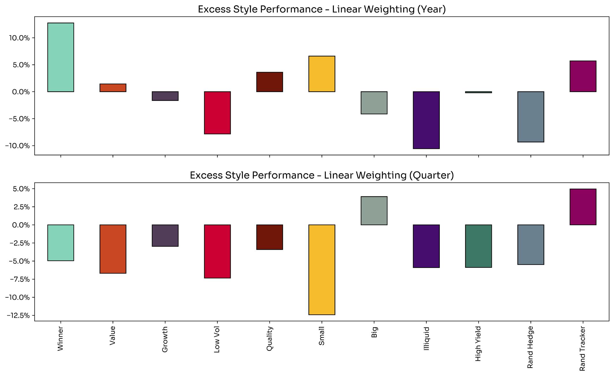 Instead of showing cumulative performance, we now present full year and last quarter performance of factors in excess of the JSE Capped SWIX (J433). The figures that follow describe excess style performance on a market cap and factor weighted basis.