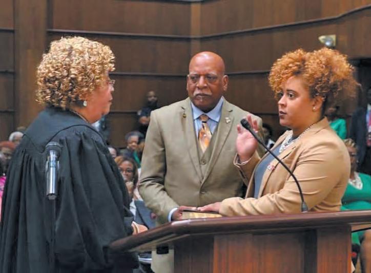 Above: Crystal was sworn into her Birmingham City Council role by her mother, Judge Carole Smitherman. Right: Crystal and her family celebrate her admittance into the State Bar.