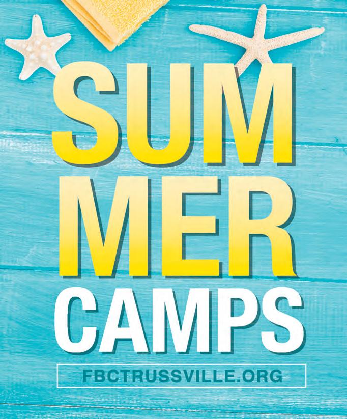 ON THE COVER: An aerial view of First Baptist Church Trussville, where Sherrie Forehand worked behind the scenes for more than four decades. Inserts, from top: Forehand and her successor Kimberly Johnson; Forehand and Pastor Buddy Champion on her final day; Forehand standing by the church event center. Photos by Diane Poole and courtesy of First Baptist Church Trussville.