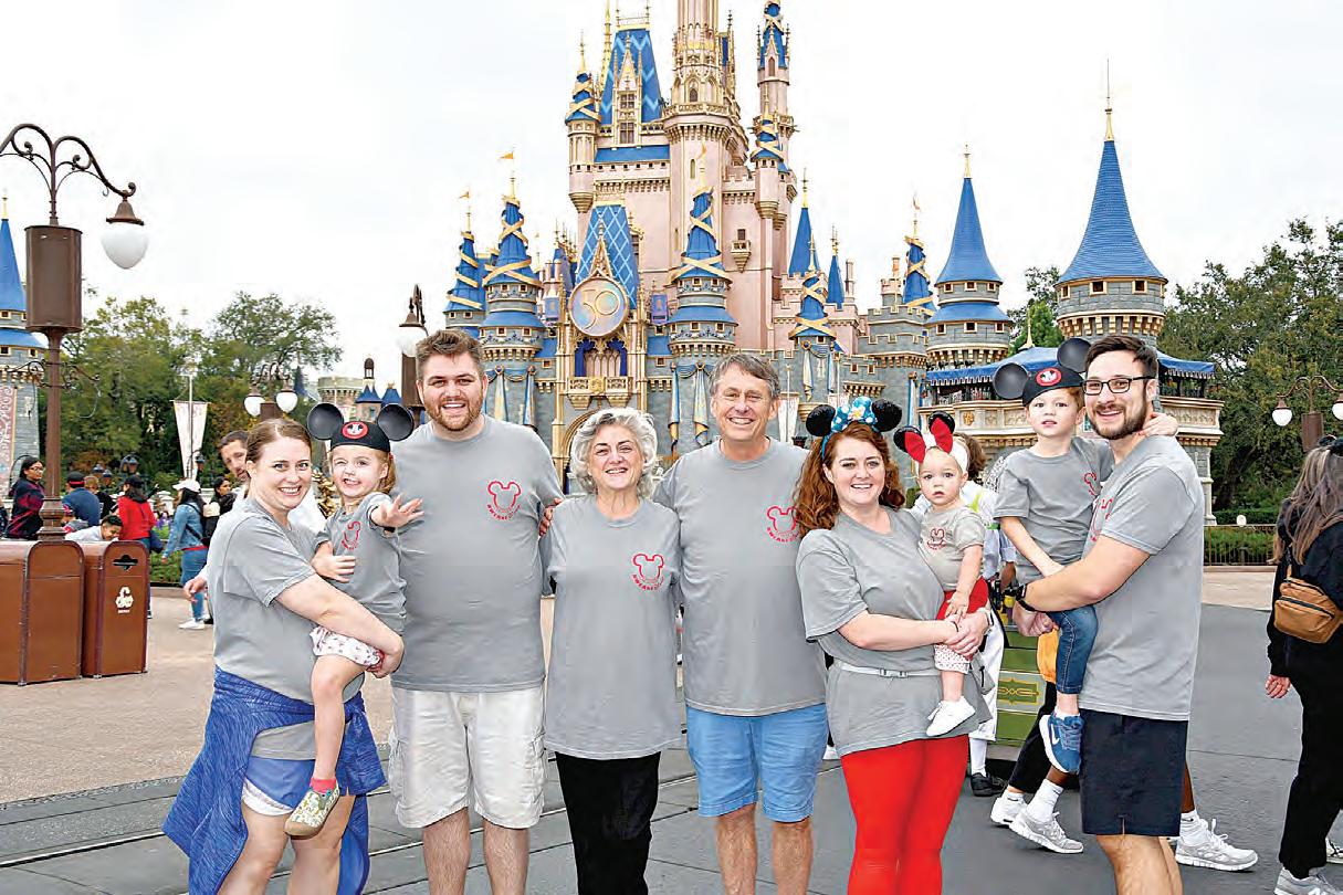 Forehand with her husband, Stan, and their children and grandchildren during a family trip to Disney World in Orlando, Florida. Travel and time with family are among the things Forehand looks forward to in retirement. Photo courtesy of Sherrie Forehand.