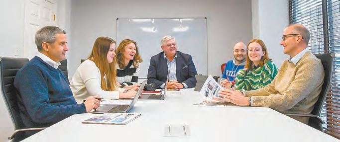 Members of the Starnes Media editorial staff — from left, Jon Anderson, Sarah Owens, Savannah Schmidt, Tim Stephens, Kyle Parmley, Cady Inabinett and Taylor Bright — will serve as mentors for students selected to participate. Photo by Savannah Schmidt.