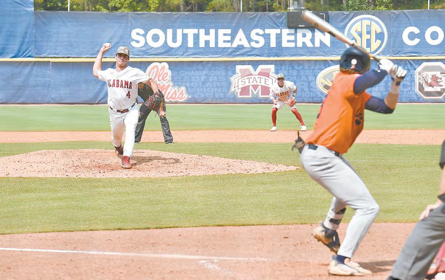 Alabama’s Riley Quick, a graduate of Hewitt-Trussville High School, pitches in a SEC Tournament game between Auburn and Alabama at the Hoover Met Stadium on May 25. Photo by Erin Nelson.