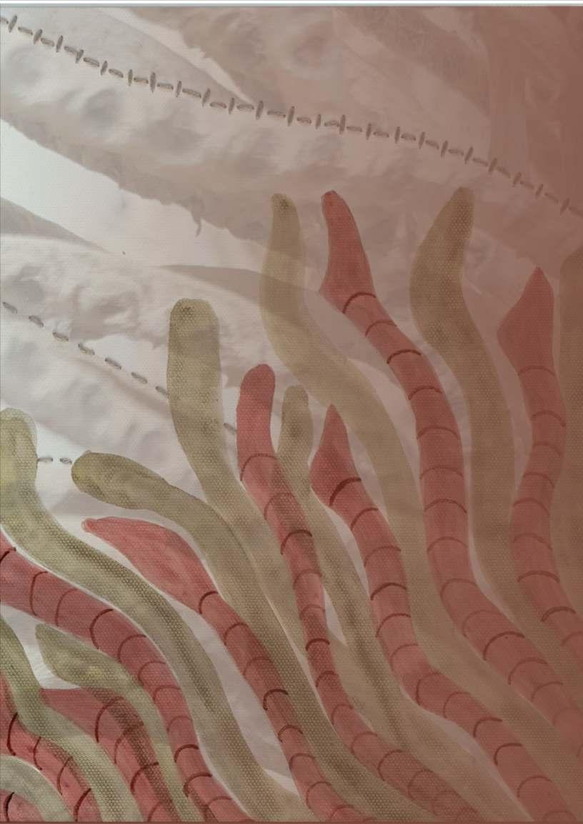 A Cor da Utopia, 2024 acrílica e pastel de óleo sobre tela - versão impressa por sublimação sobre tecido