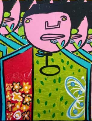 Qual o preço de expor nossa autenticidade, desejos, mostrar quem realmente somos? Autenticidade é ser congruente com nossos pensamentos, valores e sentimentos. É ter coragem de assumir nossa identidade sem medo, revelar nossa essência, mesmo que cause um colapso nas relações ou até mesmo no mundo. A obra “Meus Pensamentos” aponta para um diálogo visual entre a figura representada e a transparência do seu mundo interior, por meio de linhas, cores, formas, símbolos e palavras.