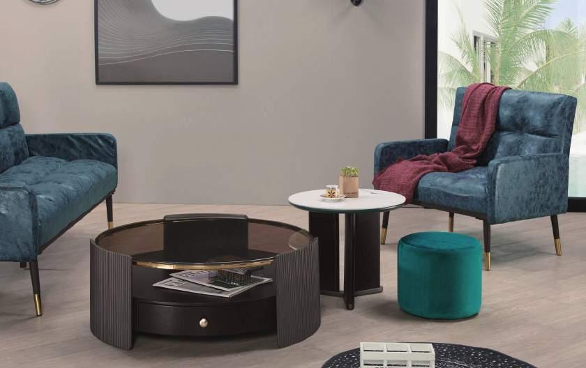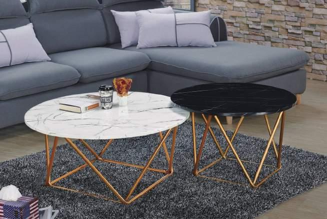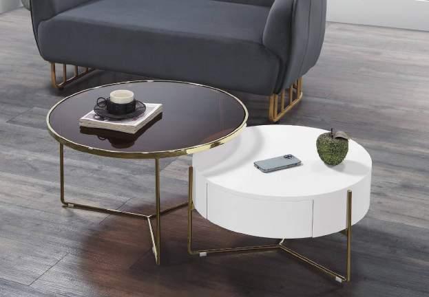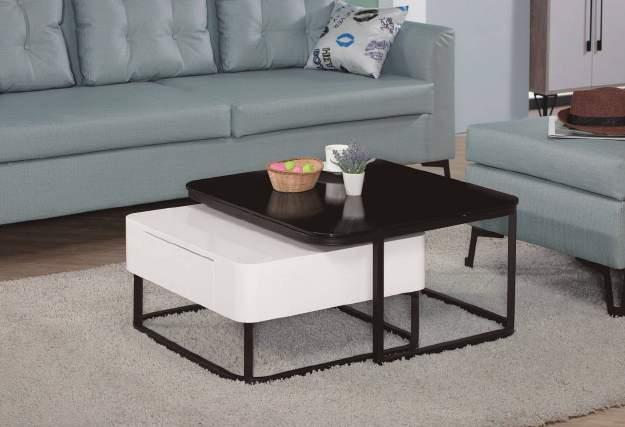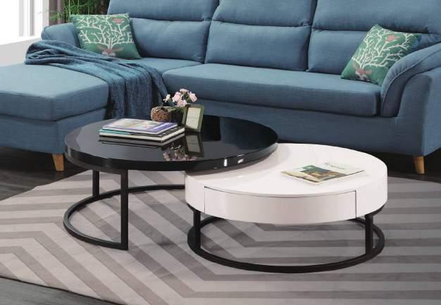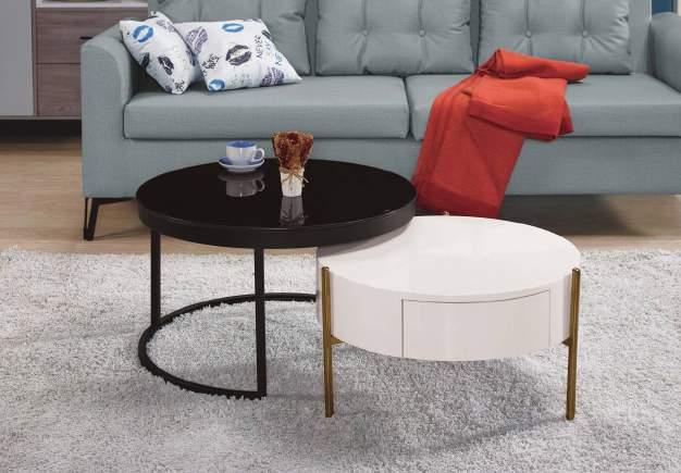 魯邦白色黑玻小茶几 寬69x深69x高49.5(公分)