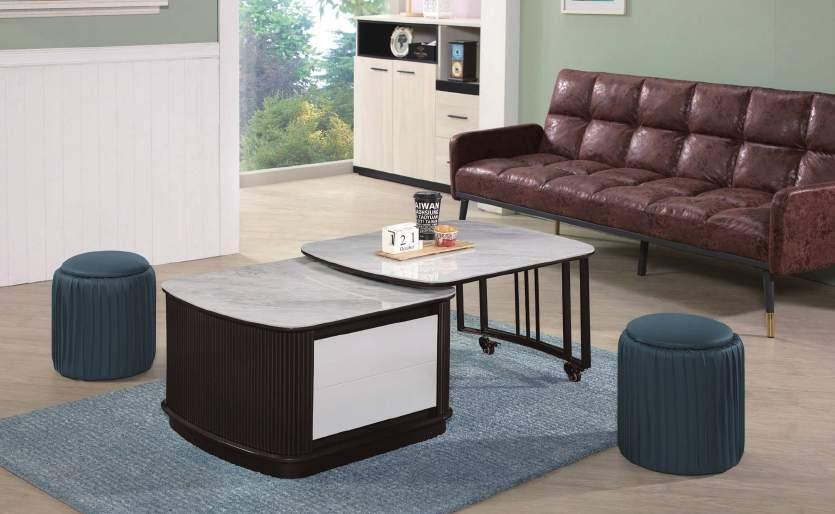 269-2(607-1+707-2) 萊斯4尺石面大茶几 寬121x深60x高55.5(公分) B5084 (140000) (附貓抓皮面收納型腳椅x2)