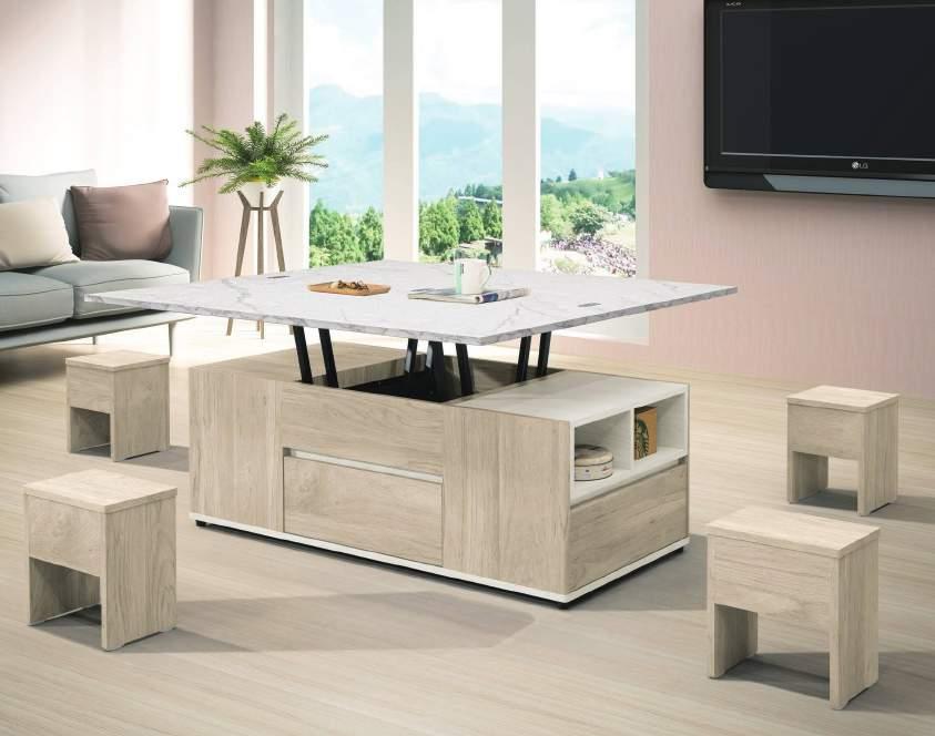 270-2 凱莉莎五抽大茶几 寬121x深60.2x高46.2(公分) A50645 (107500) (附1張收納型貓抓皮面腳椅)