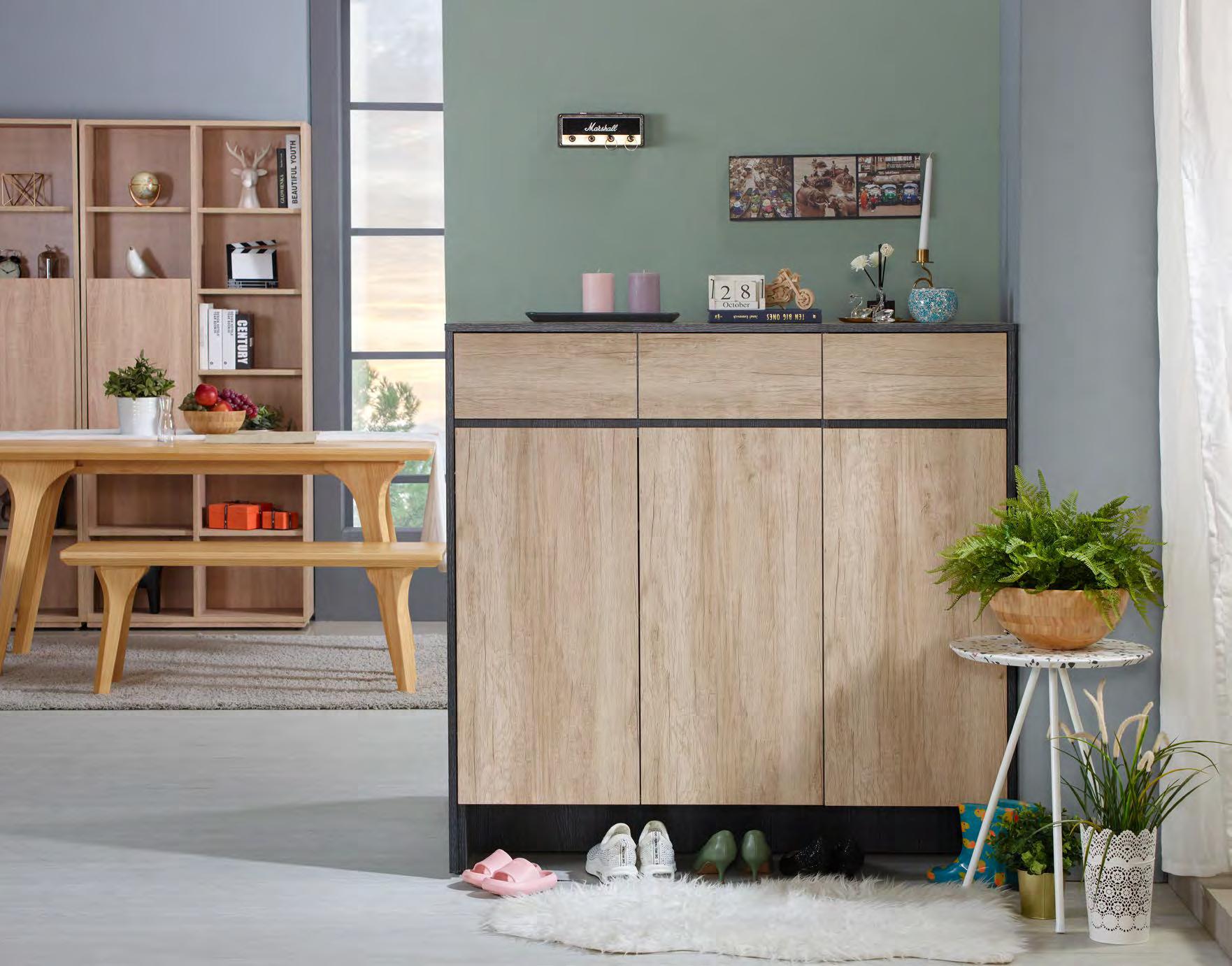 維尼3.3尺白木紋二抽三門鞋 櫃 (#X-2018)