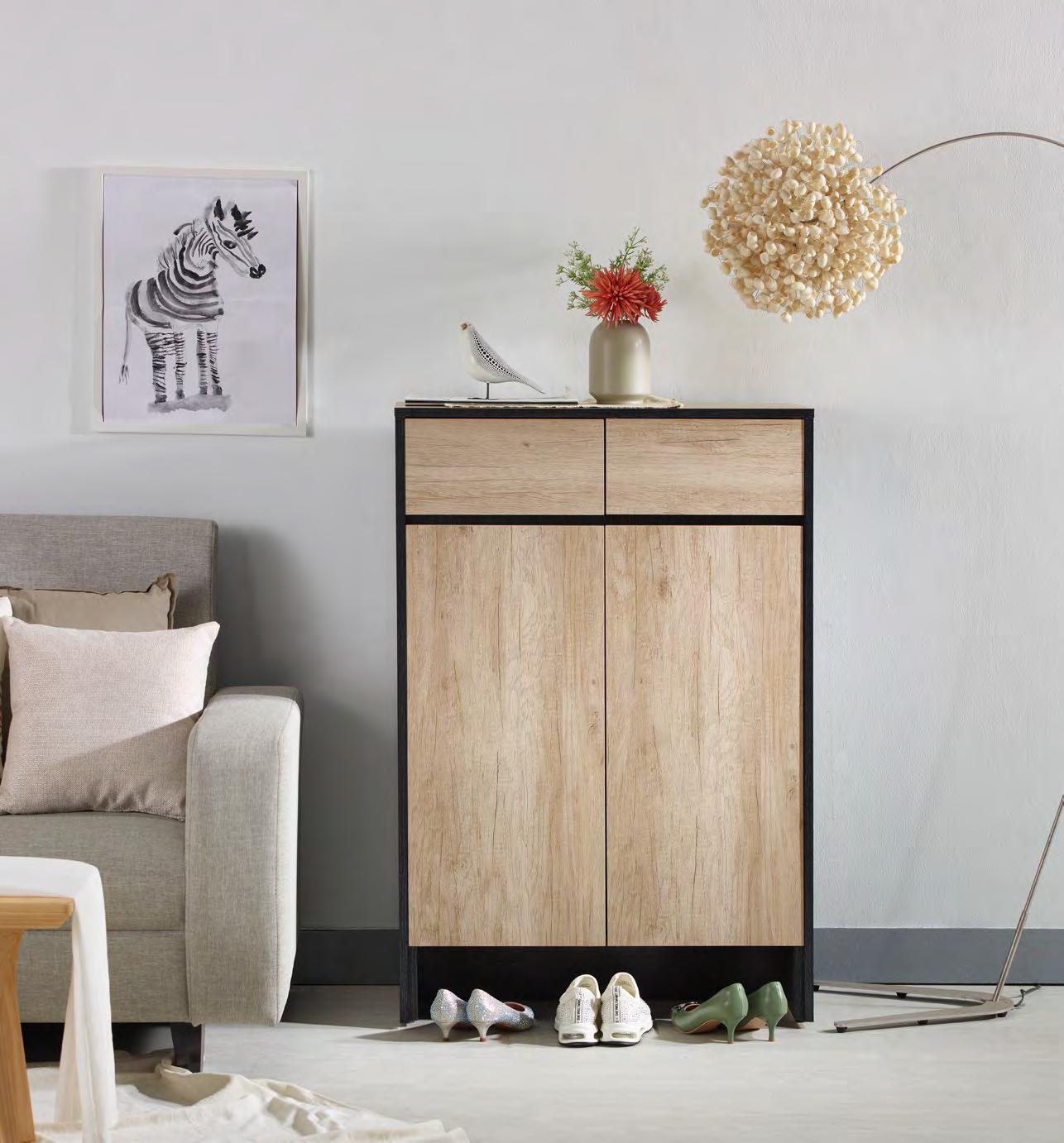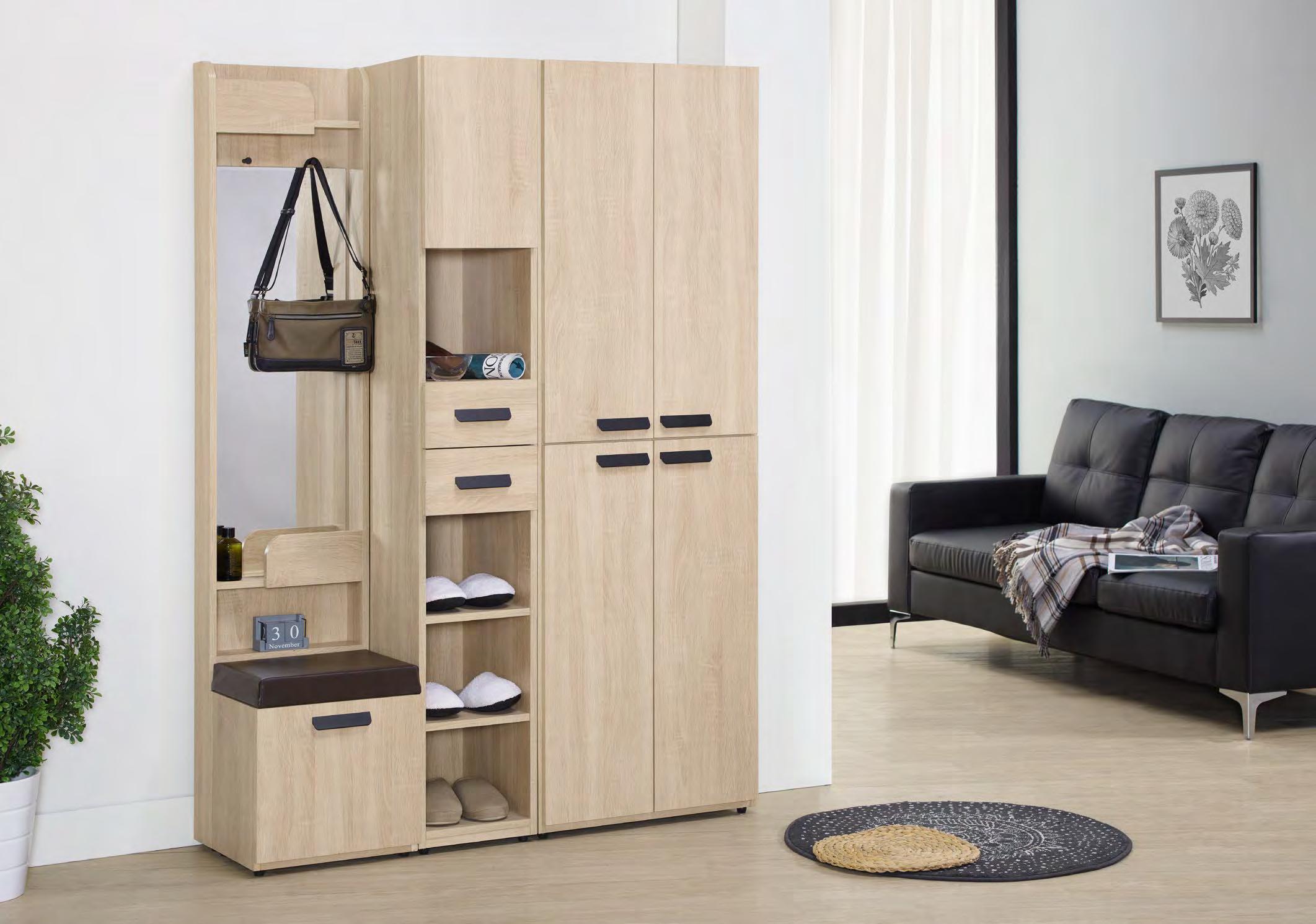 維尼2.7尺白木紋二門二抽鞋 櫃 (#X-2020)
