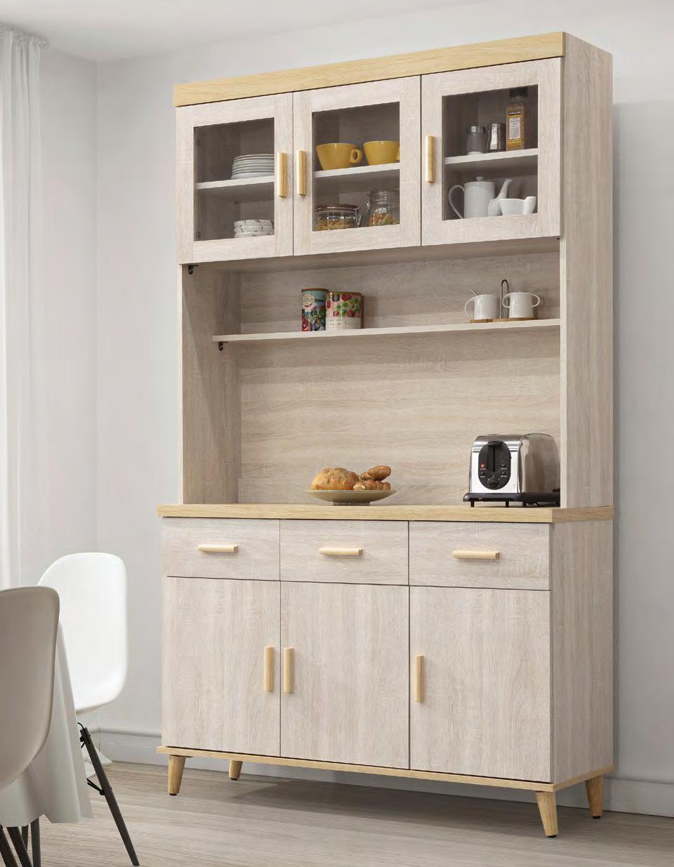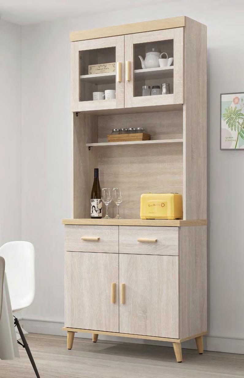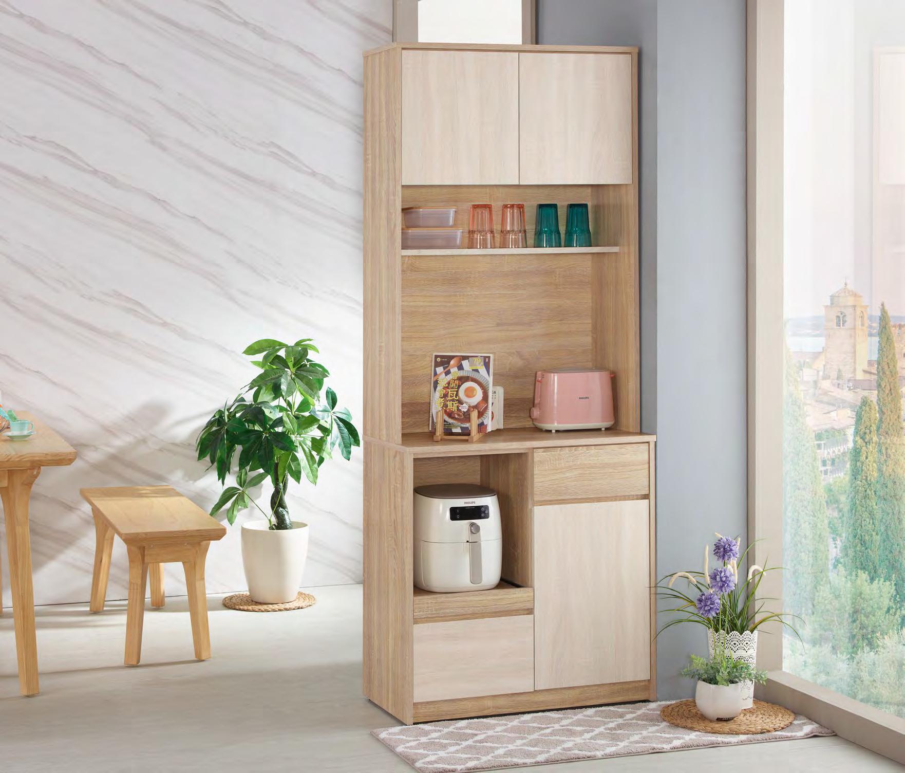 美斯特2.6尺黃金橡木色 三門三抽餐櫃(#0D061FL)