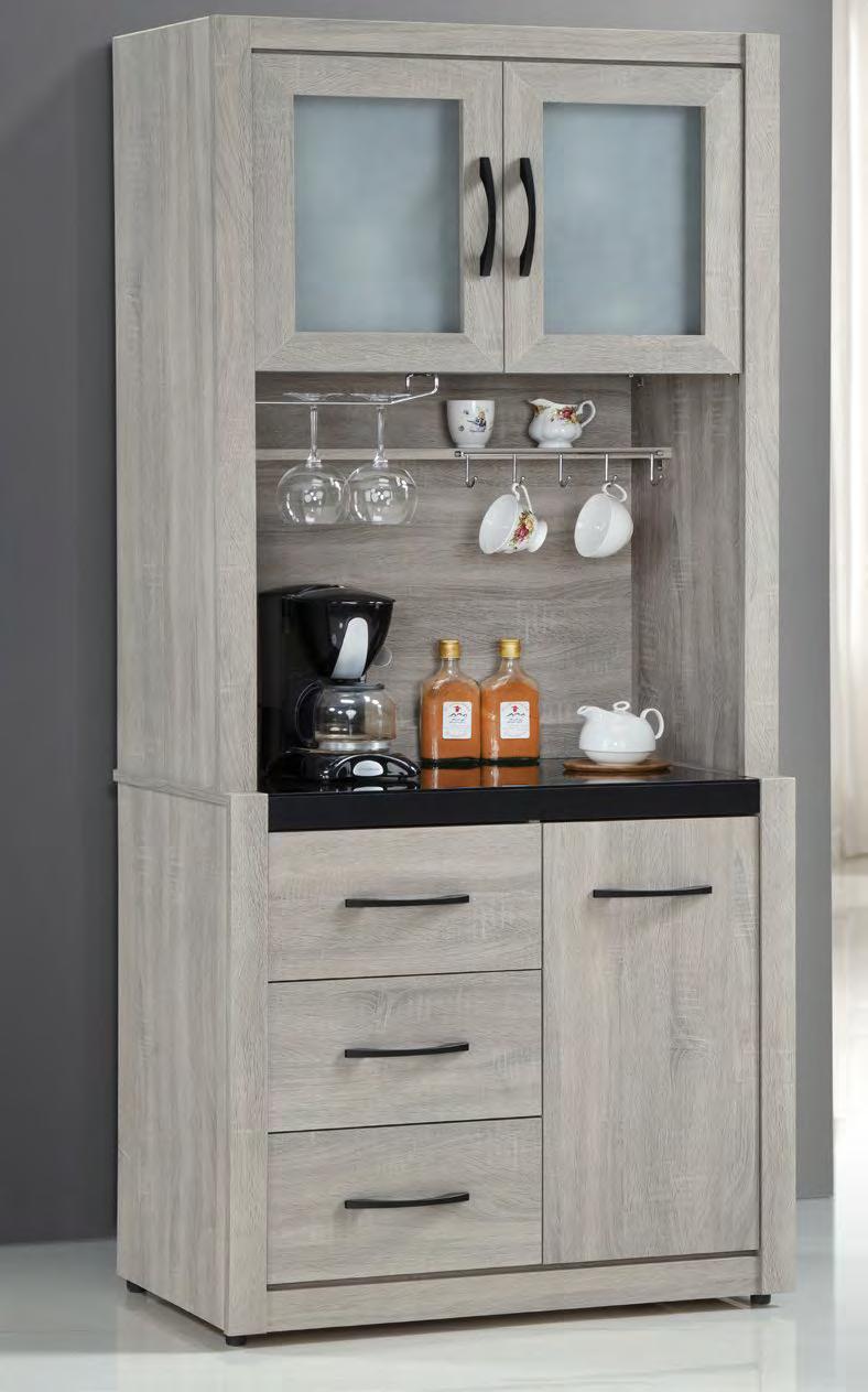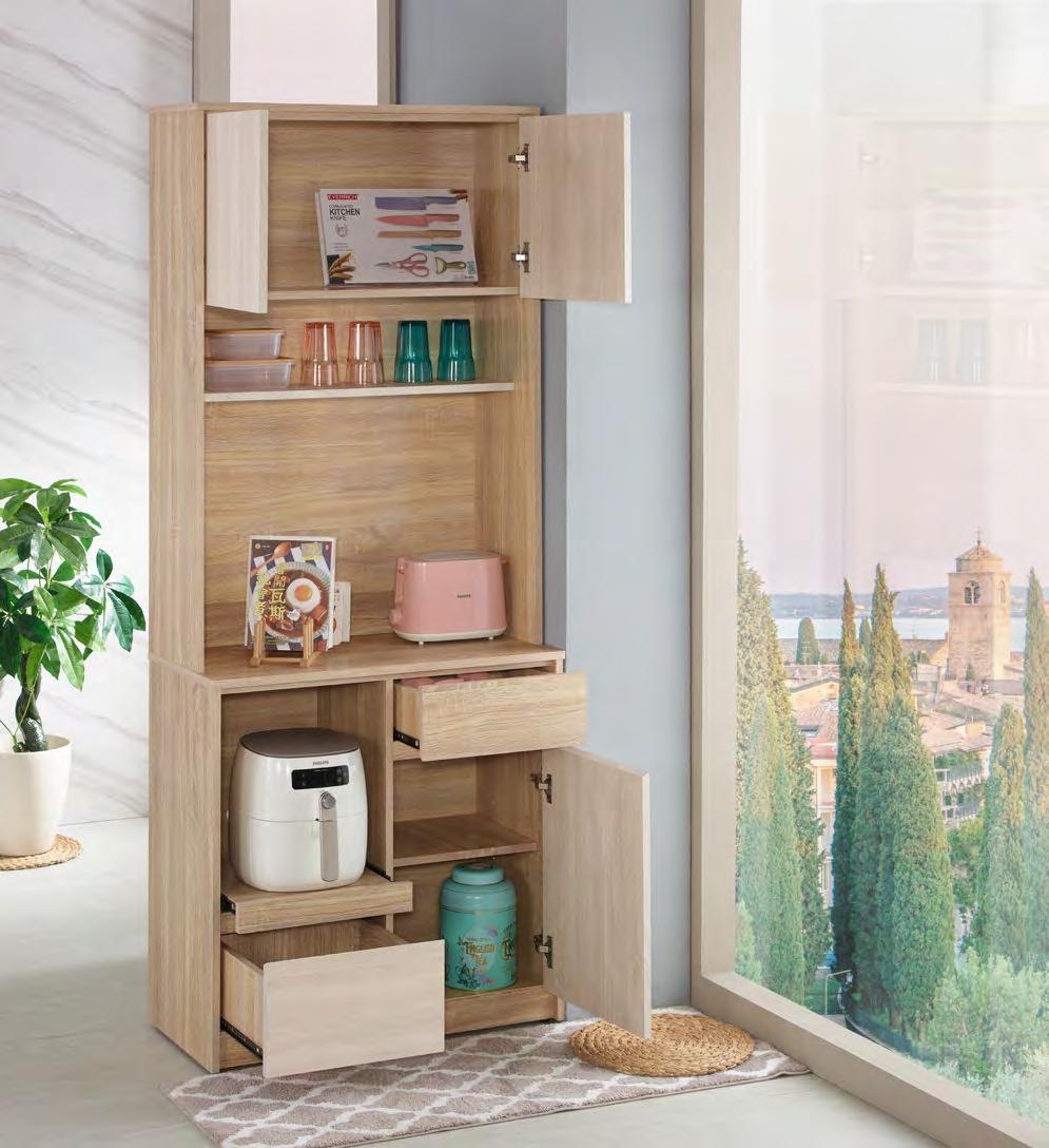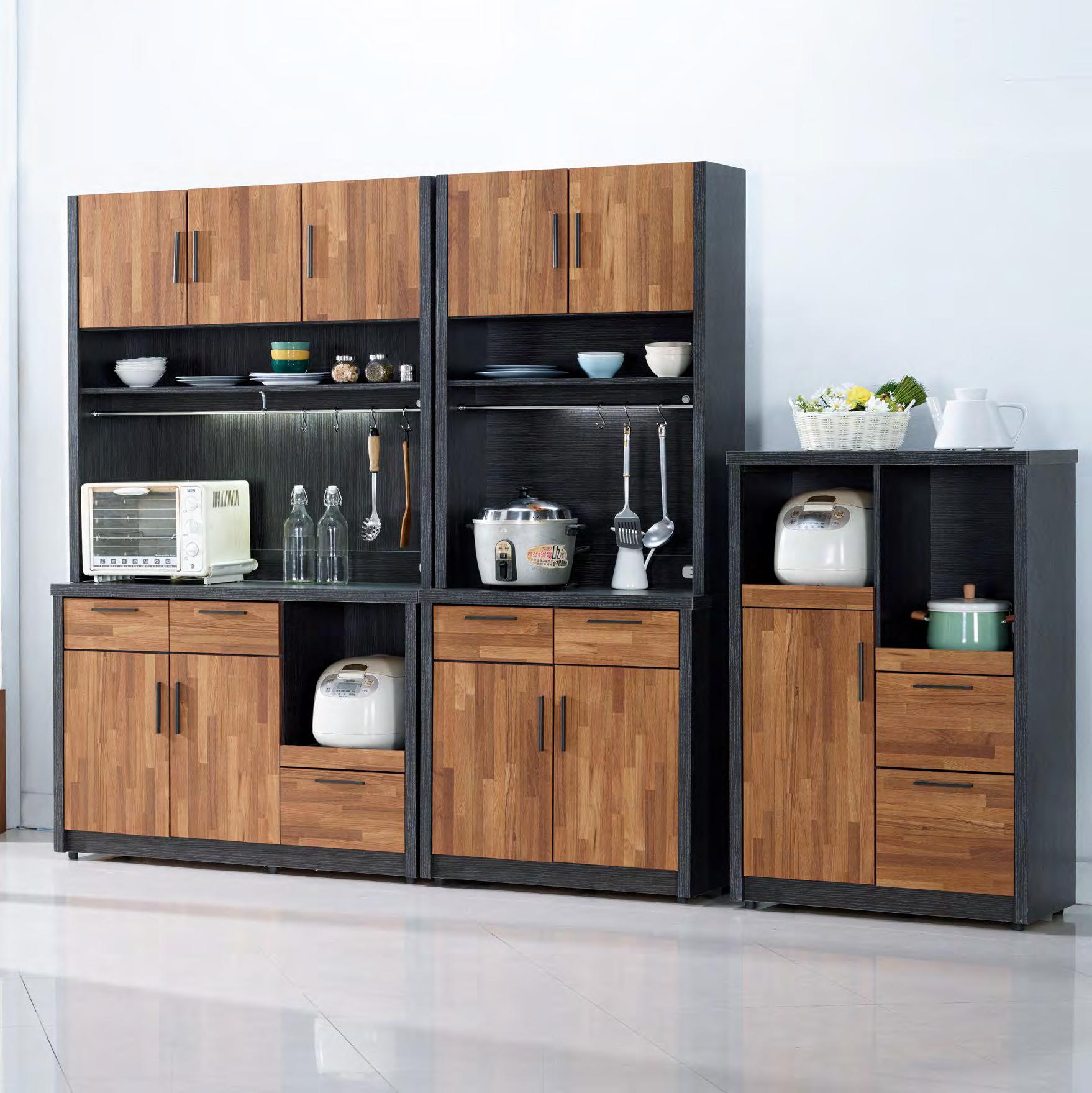 美斯特2.6尺黃金橡木色 三門三抽餐櫃(#0D061FL)