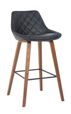 比爾實木腳菱格紋黑皮吧台椅 (#JY3049-1109)
