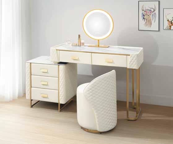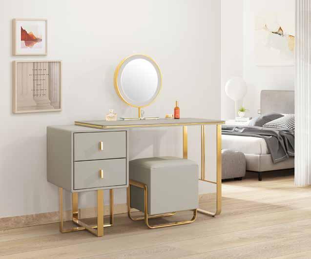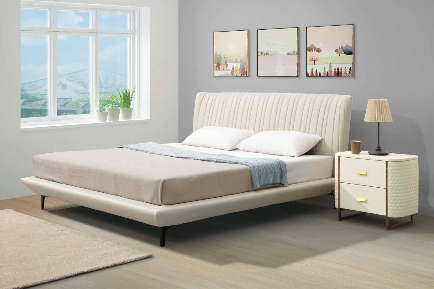 1. 環保MDF材質 2. 高級乳膠皮革全包覆 3. 腳座採金色電鍍 高更 床頭櫃 床組 床台 沙發組 沙發床 休閒椅 房間椅 展示櫃 電視櫃 高低櫃 玄關桌 雙面櫃 鞋櫃 餐櫃 收納櫃 餐桌椅 書桌書櫃 B E D R O O M Bedroom HY HOME Art with an attitude. 臥室系列 4 3 New Design Life