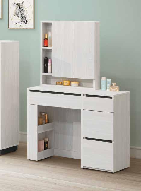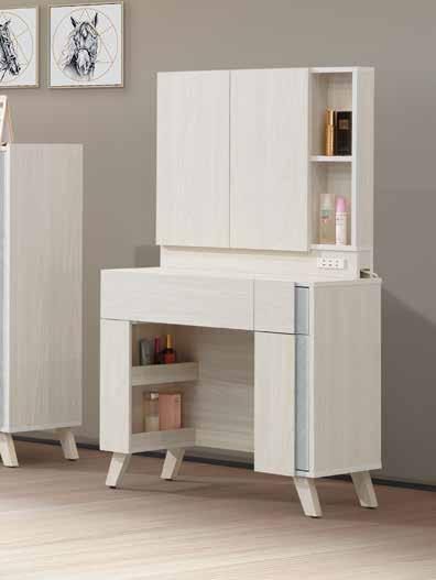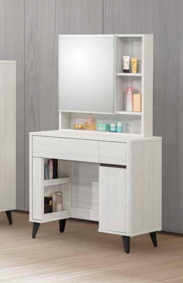 3尺伸縮鏡台 (H205+G540-2+G305腳) 寬90×深40×高80cm 二抽櫃:寬40×深40×高60cm #266V $23100 (二抽櫃可左右自由移動) B100-09 (22019-09) 9 哈維床頭櫃 (H203) 寬45×深40×高46cm #224V $8400 B100-07 (22019-01) 7 8 9 床頭附安全插座 55cm 12cm 1 4 2 3 5 6 7 ! 售完為止 SOLD OUT 床組 床台 沙發組 沙發床 休閒椅 房間椅 展示櫃 電視櫃 高低櫃 玄關桌 雙面櫃 鞋櫃 餐櫃 收納櫃 餐桌椅 書桌書櫃 B E D R O O M Bedroom HY HOME Art with an attitude. 臥室系列 100 99 New Design Life