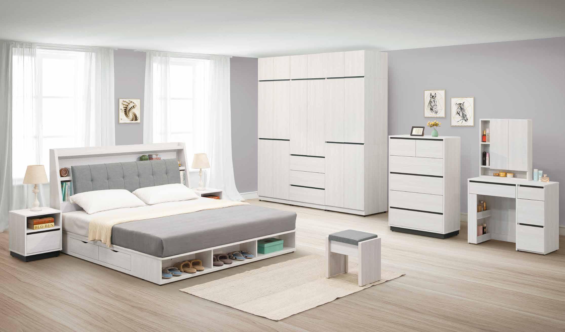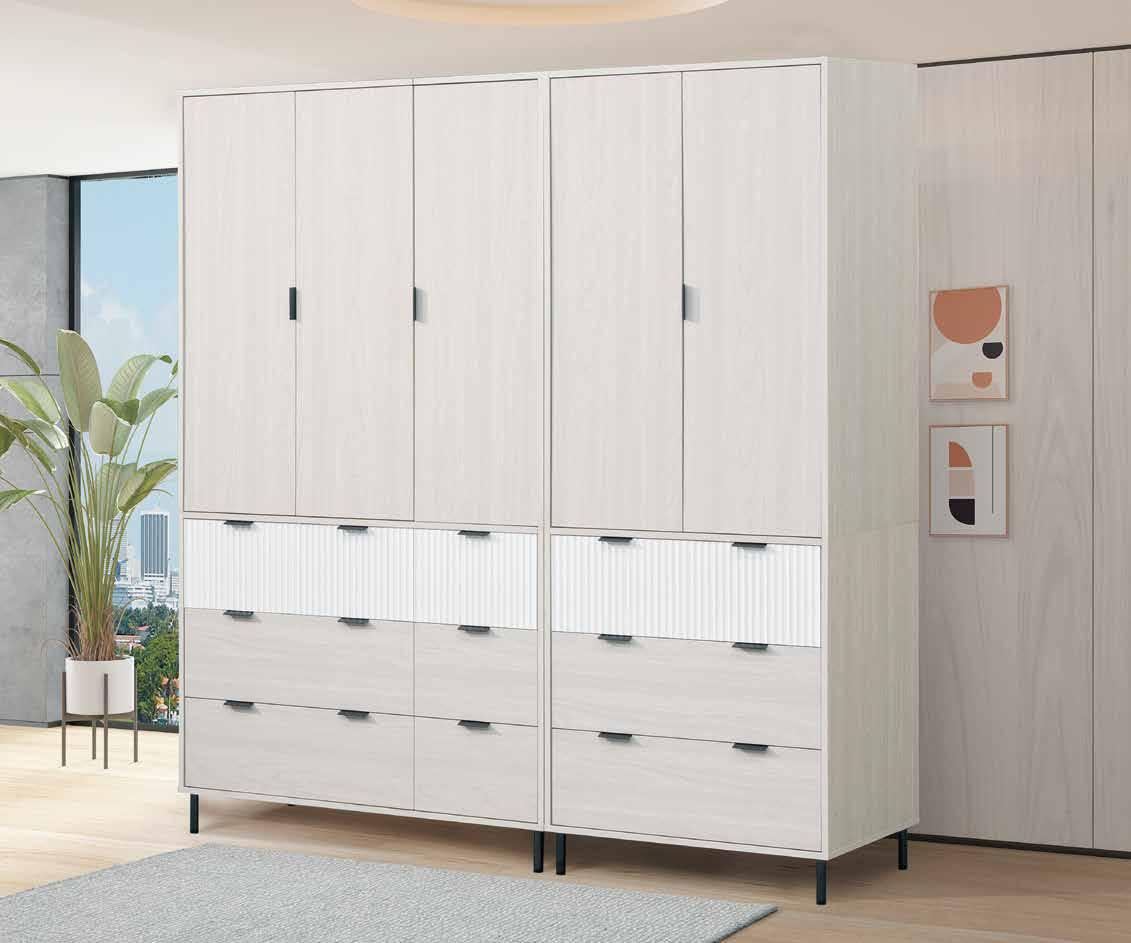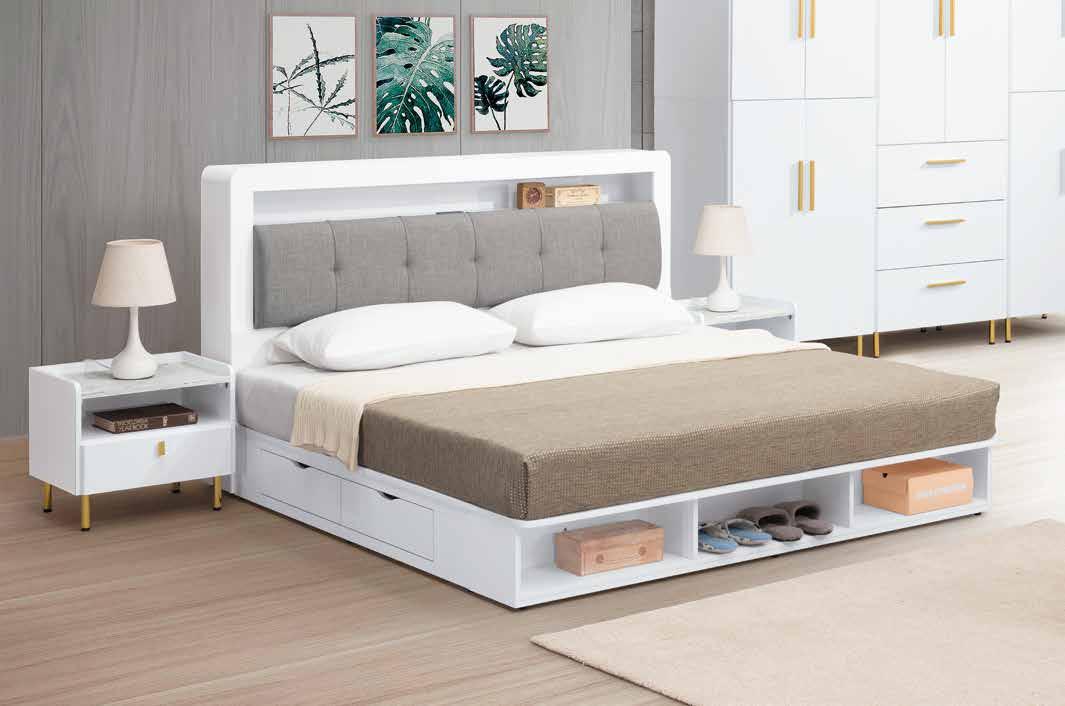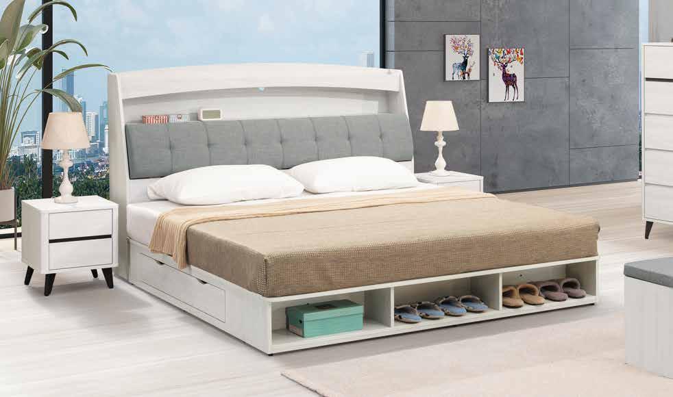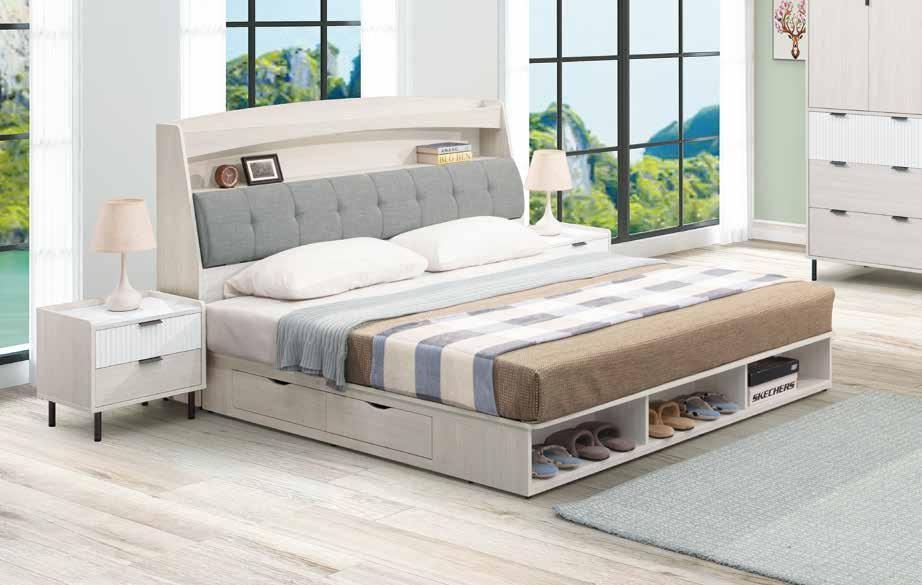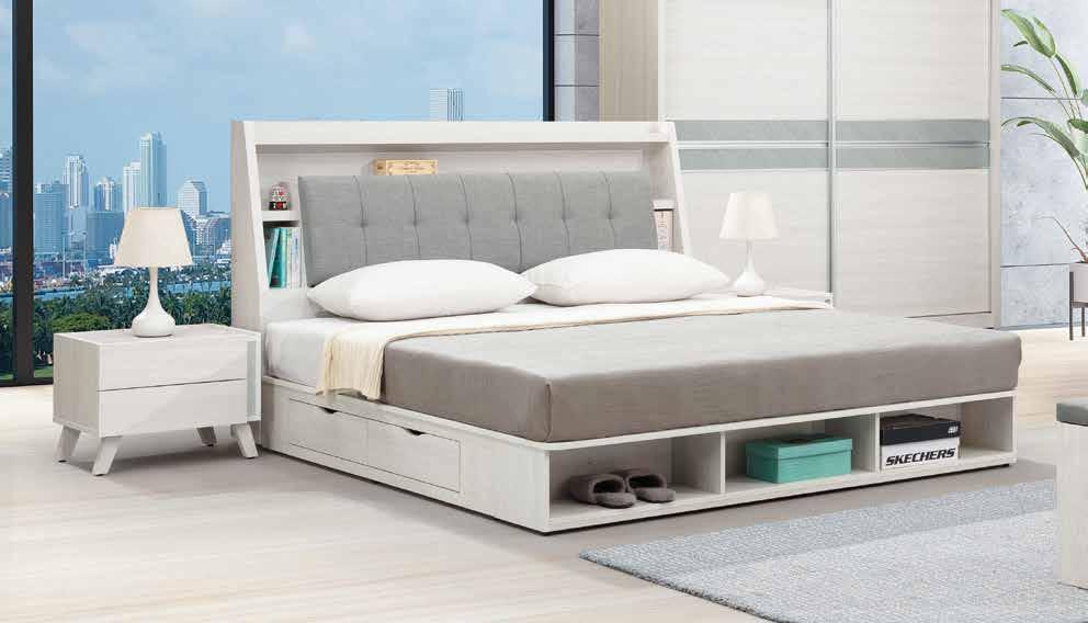 與喬迪和艾維系列同色系 ! 售完為止 SOLD OUT 系統式1.0mm ABS材質封邊特寫 導圓角設計、不刮手、質感細緻 床頭附安全插座,使用便利 床組 床台 沙發組 沙發床 休閒椅 房間椅 展示櫃 電視櫃 高低櫃 玄關桌 雙面櫃 鞋櫃 餐櫃 收納櫃 餐桌椅 書桌書櫃 90 89 B E D R O O M New Design Life Bedroom HY HOME Art with an attitude. 臥室系列