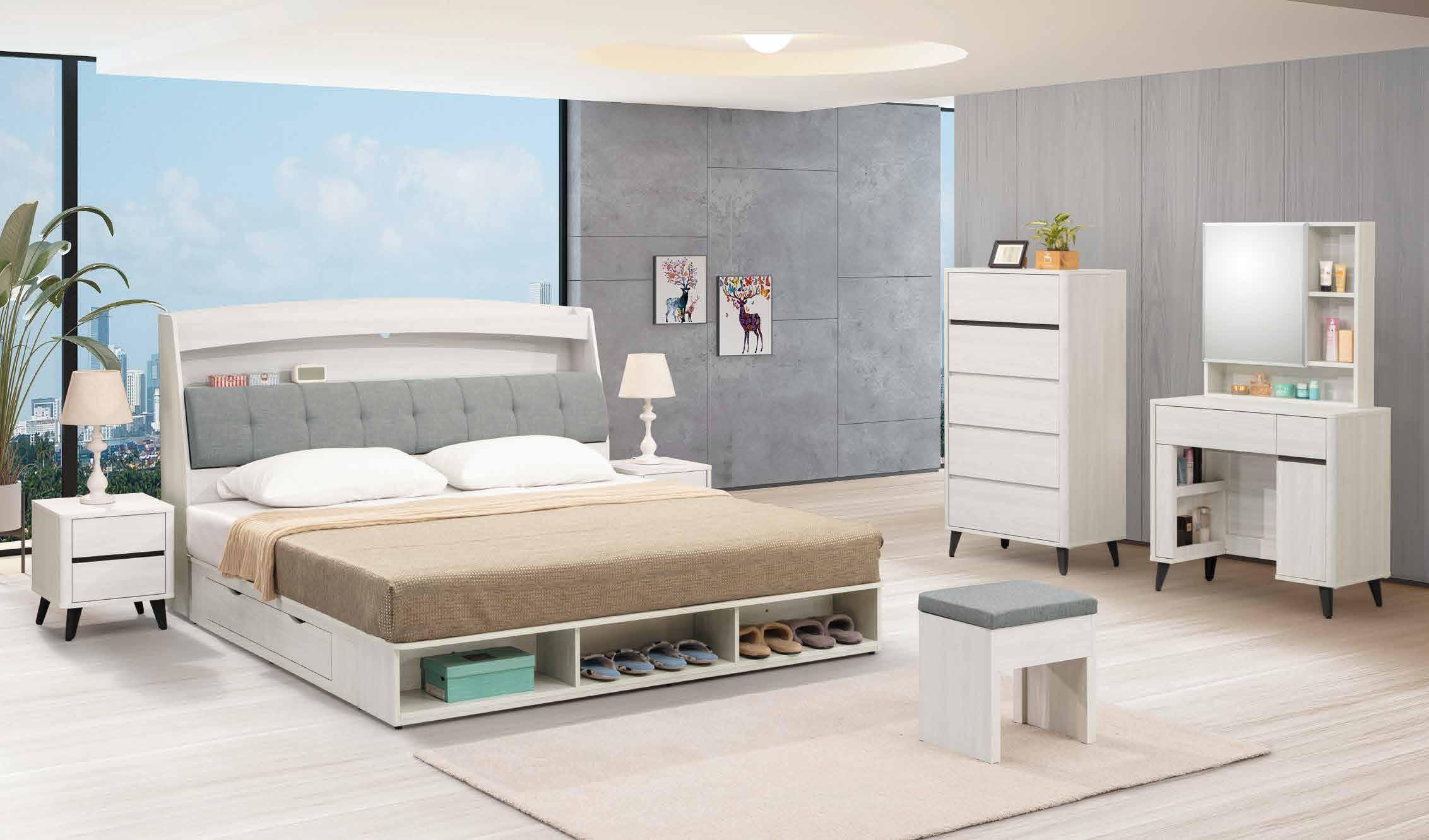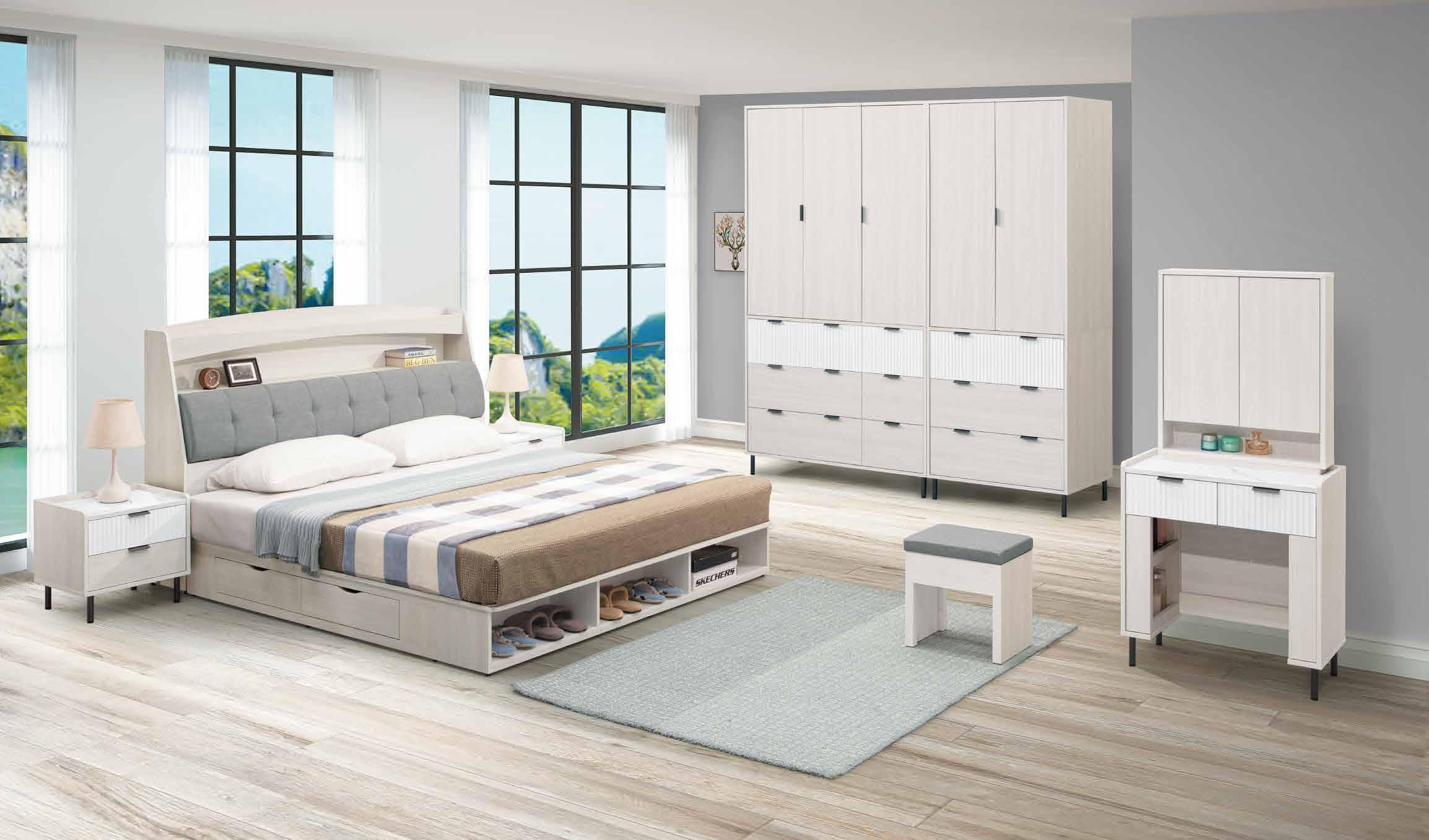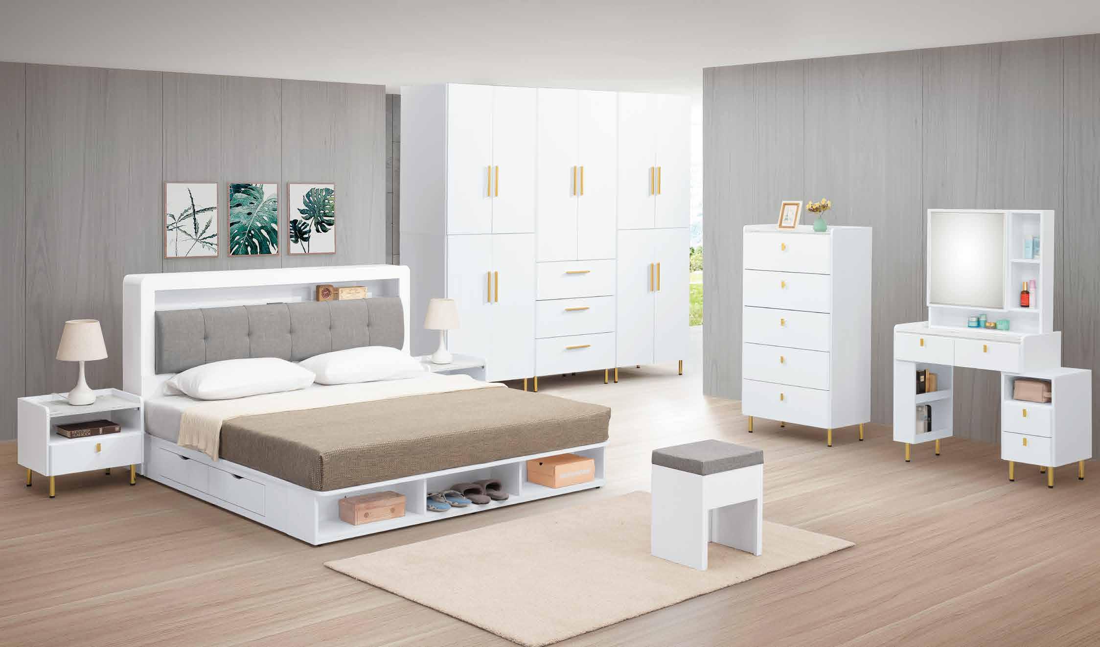 與喬迪和艾維系列同色系 ! 售完為止 SOLD OUT 系統式1.0mm ABS材質封邊特寫 導圓角設計、不刮手、質感細緻 床頭附安全插座,使用便利 床組 床台 沙發組 沙發床 休閒椅 房間椅 展示櫃 電視櫃 高低櫃 玄關桌 雙面櫃 鞋櫃 餐櫃 收納櫃 餐桌椅 書桌書櫃 90 89 B E D R O O M New Design Life Bedroom HY HOME Art with an attitude. 臥室系列
