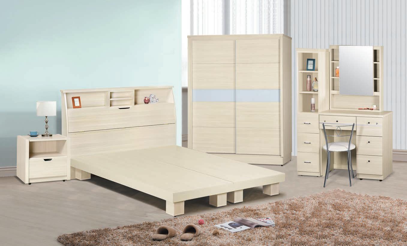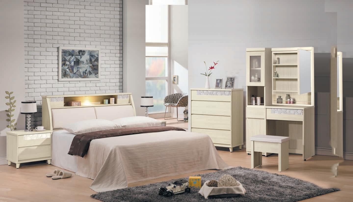 艾瑪米白2尺鏡台(含椅)(225) 94-2(☆92-2)(11750) 不含床墊 附床頭櫃1只 201-10 艾瑪米白床組(全組) 417-2(☆407-2)(52125) 201-24 ◇床頭內部圖