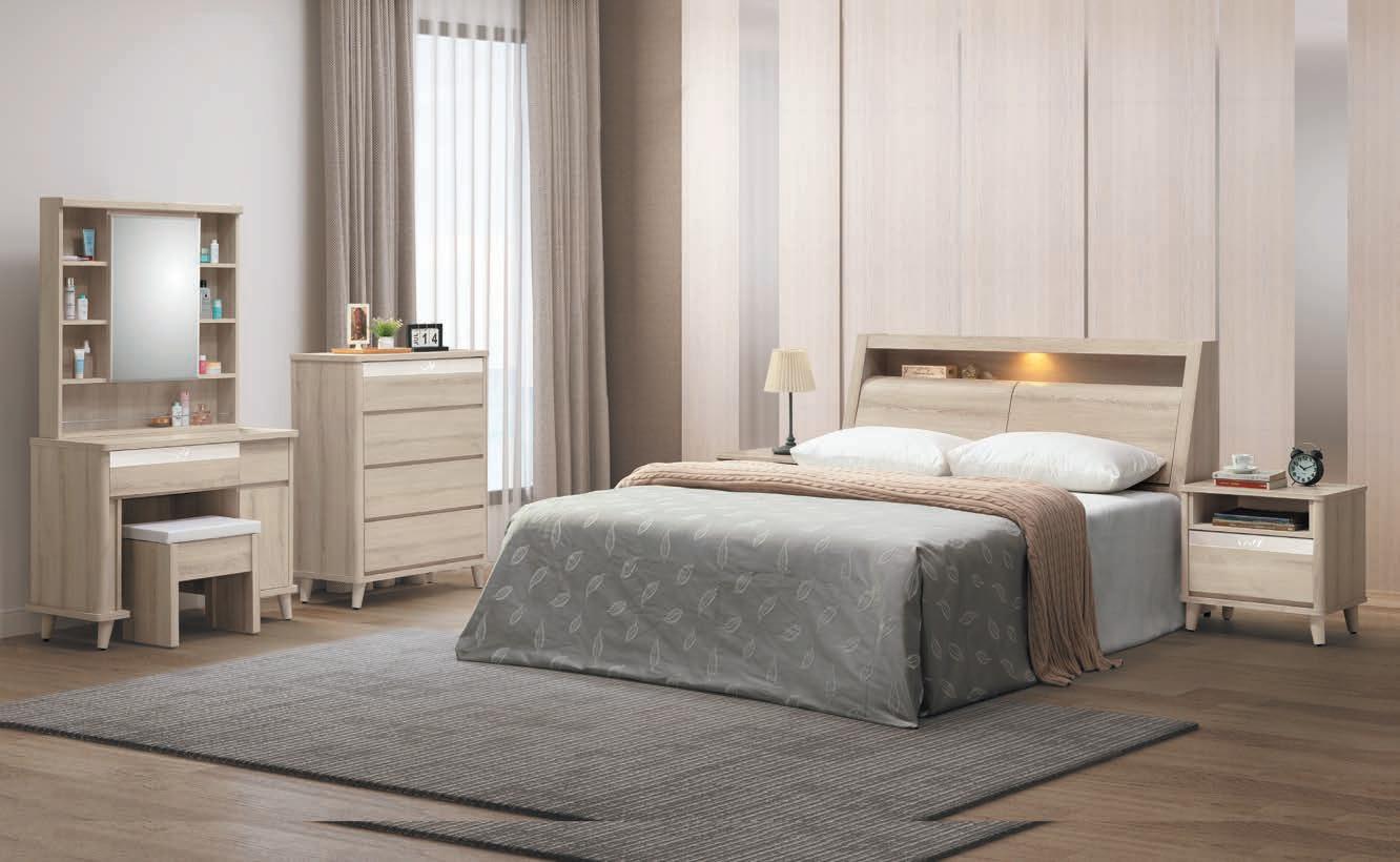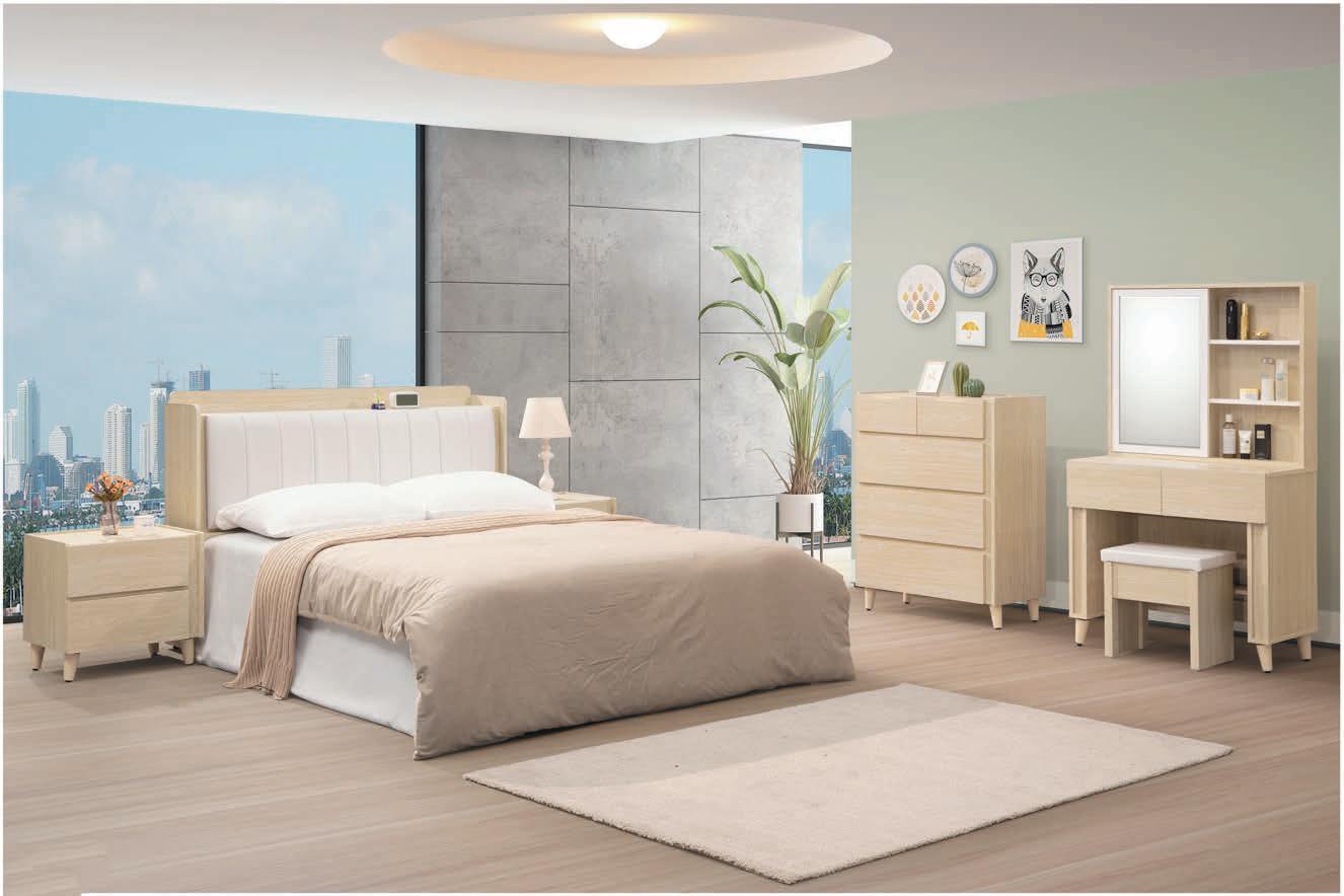 245-661 千葉白橡木5尺床頭(661) 寬153×深30×高105×下方高52公分 86-2 (☆84-2)(10750)(曲木/LED) 245-58 梵帝岡5尺淺橡木床頭片(木心板) 寬151.5×深15×高101.5×下方高56公分 7-3 (☆68-2)(8750) 245-631 花朵5尺雪松床頭(631)(貓抓皮) 寬153×深30×高103×下方高52公分 84-2 (☆82 - 2 )(10500 ) 245-81 梅杜莎5尺淺橡木床頭 寬152×深30×高103×下方高56公分 86-2(☆84-2)(10750) 另有6尺 詳見P207頁 另有6尺 詳見P217頁 台疆6611 貓抓皮 ◇無線充電盤.USB孔 附LED燈 可置物 貓抓皮 另有6尺 詳見P220頁 SERIES MATCH STYLE BEDROOM new 臥室 MORE 3.5 尺甜甜