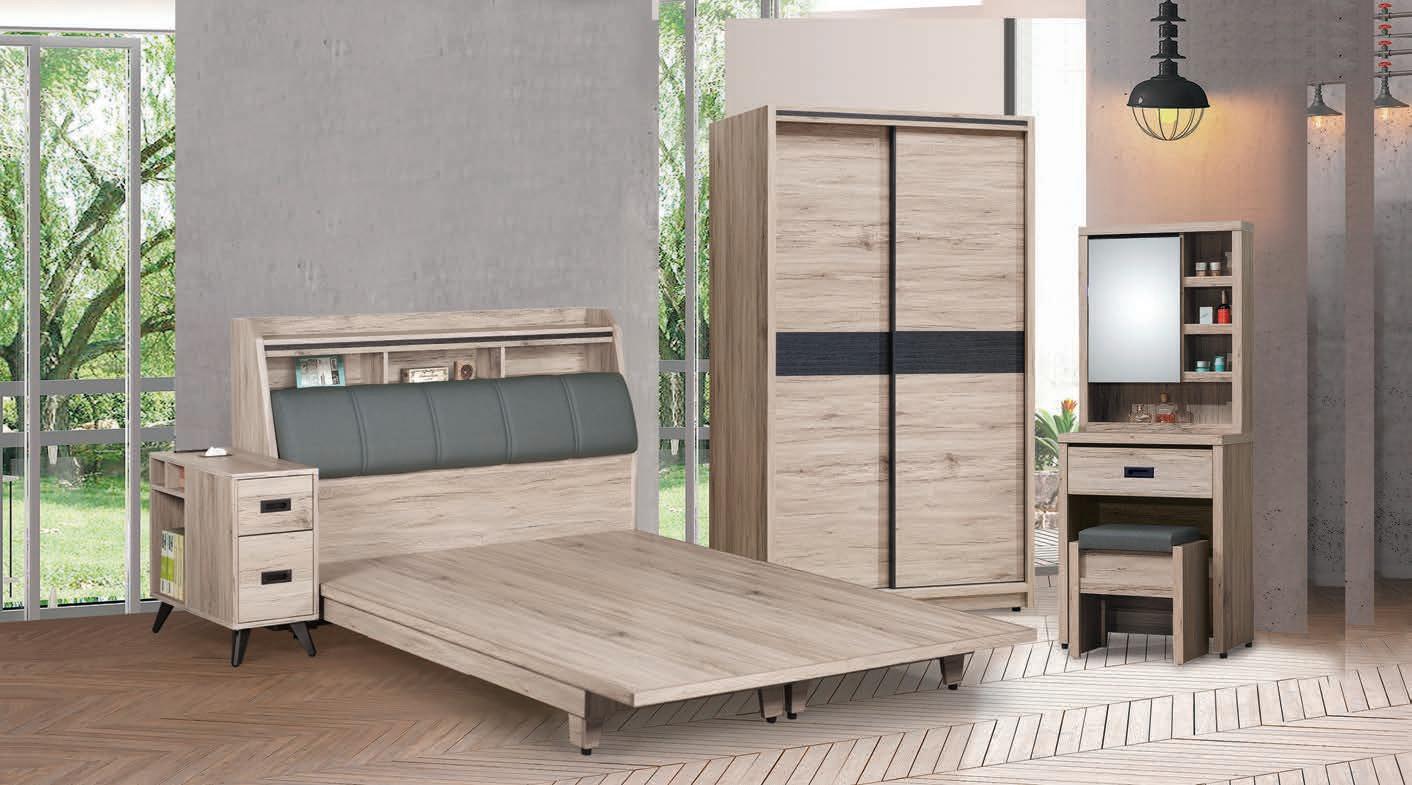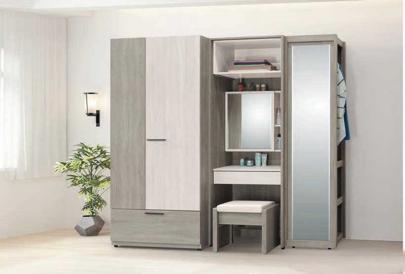 ●● 材質說明 MIT防蛀環保低甲醛木心板 表面:最新技術白橡木紋同調立體浮雕耐磨處理 比擬鋼刷風化木觸感薰衣草橡木搭配洗白 橡木唯美配色 明亮空間 抽屜滑軌MIT鋼珠滑軌 全系列高級時尚黑鈦金色油壓緩衝鉸鏈 背板採崁入式美背處理 床片及化妝椅皮墊 高級耐磨透氣皮 衣櫥斗櫃抽屜底板加厚5mm高級夾板貼皮USB夜燈床片 使用MIT安全認證USB模組 夜燈觸控開關床底抽屜可任意 配置左右 獨特尾片設計 安全邊角導圓整體美觀 創新模塊化系統衣櫃組合模式 充分利用轉角空間