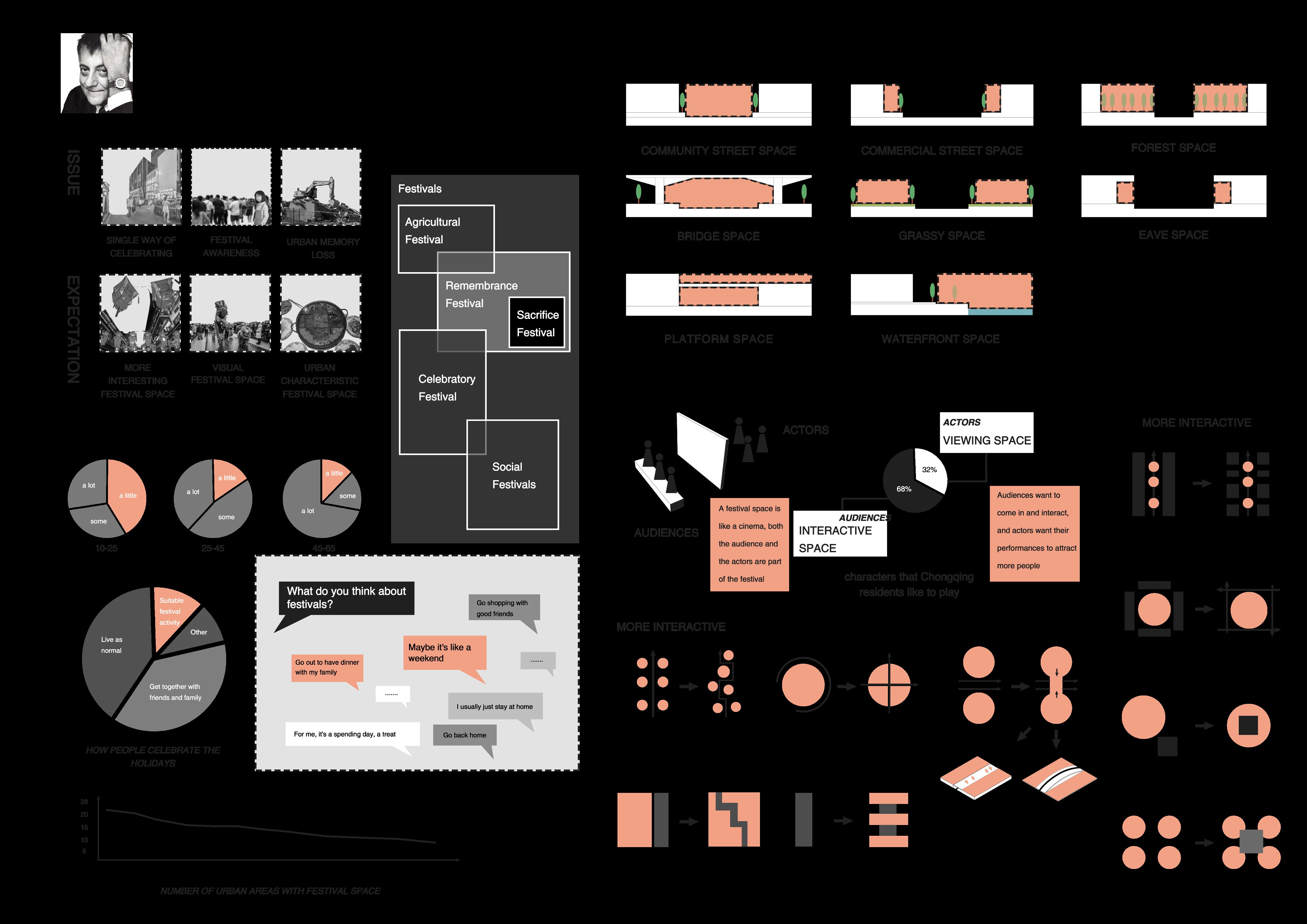 The project aims to prevent people's loss of festival memory by designing festival Spaces in the city. These Spaces maintain the normal operation of the city on weekdays and provide festive activity Spaces during festivals