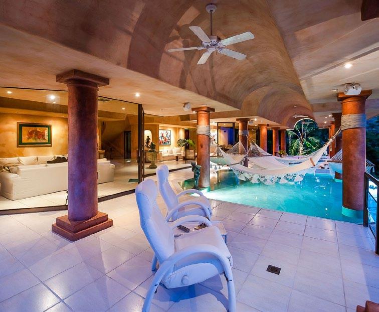 Descubrimos en nuestra visita que no hay un mal lugar para disfrutar de las vistas. Incluso al sentarse de espalda, los dueños se aseguraron de instalar un espejo horizontal a la altura de los ojos, el cual refleja el océano sin perder el mínimo detalle, tal cual pintura. Además, hay un bar húmedo, baño completo, así como espacio para guardar juguetes de piscina, herramientas, y demás.