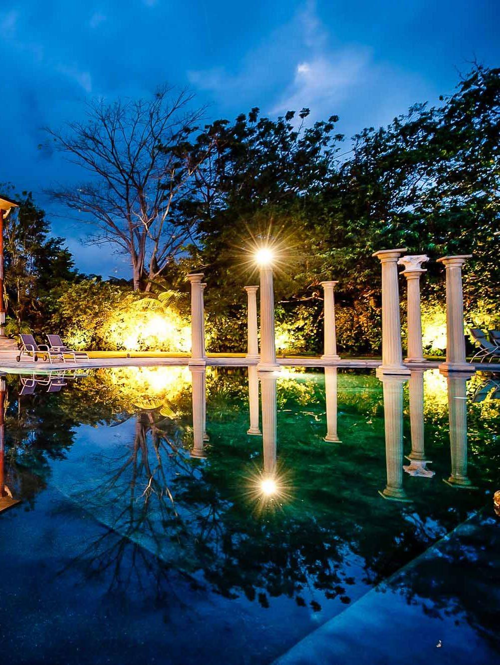 A esta área se le agrega una cascada que fluye desde la piscina reflectante, en el último nivel, hasta la piscina de abajo, la cual cuenta con un borde infinito, completando la imagen como una tarjeta postal. Sin duda alguna, una de las piscinas más impresionantes de Faro Escondido.