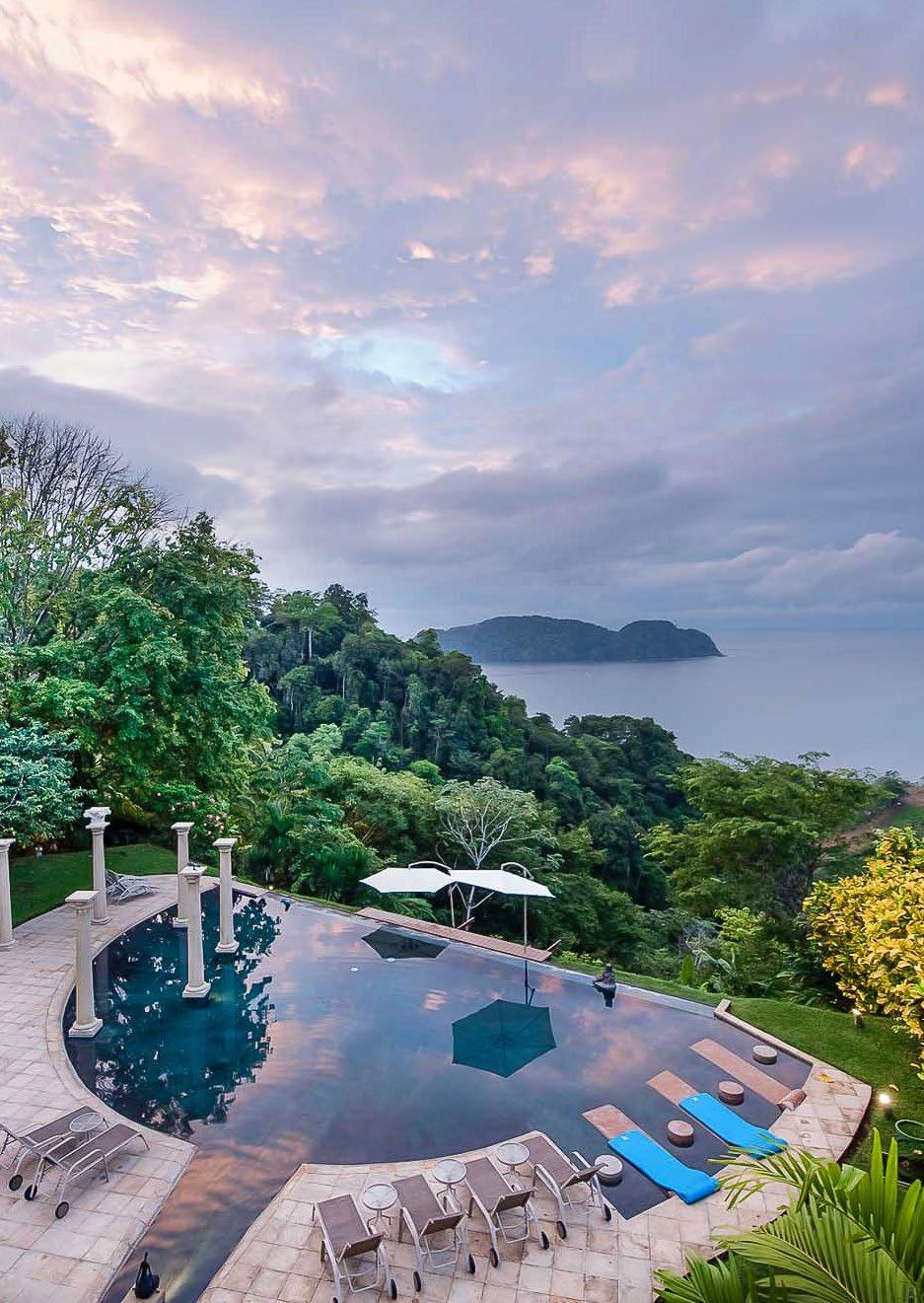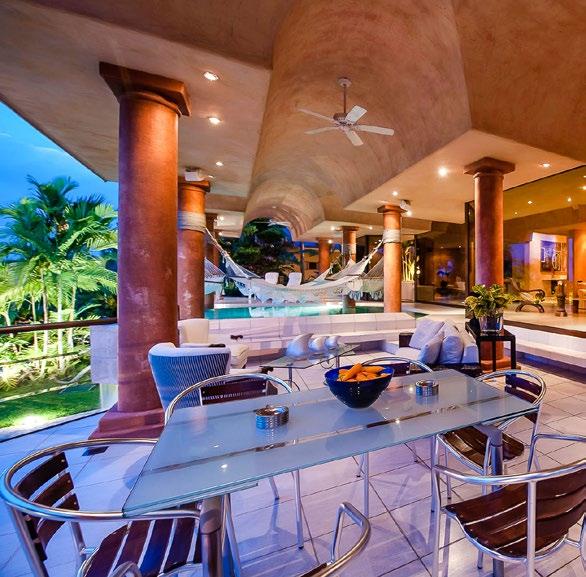 La terraza exterior está techada; es un área para compartir y entretener, con muchísimo espacio para sentarse,y una piscina reflectante rodeada de columnas, las cuales sirven para que los dueños pongan hasta 5 hamacas y se sienten a descansar y relajarse. Al igual que el resto de la casa, el diseño está orientado a compartir en familia, por lo que el punto focal es la piscina, y por puesto, las vistas panorámicas del océano, la costa, y las montañas.