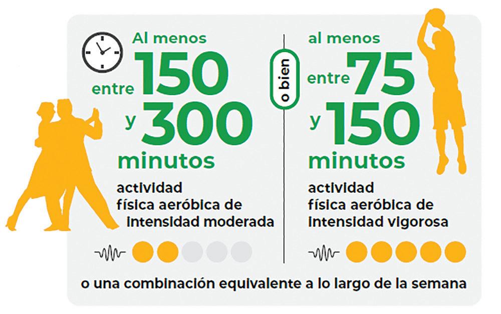 Eso es ejercicio moderado (bailar, jardinería, andar en bicicleta a menos de 10 millas por hora) ó 75 minutos de ejercicio más intenso. ¿Caminar cuenta? Si te estás moviendo un poco más rápido de lo normal, sí.