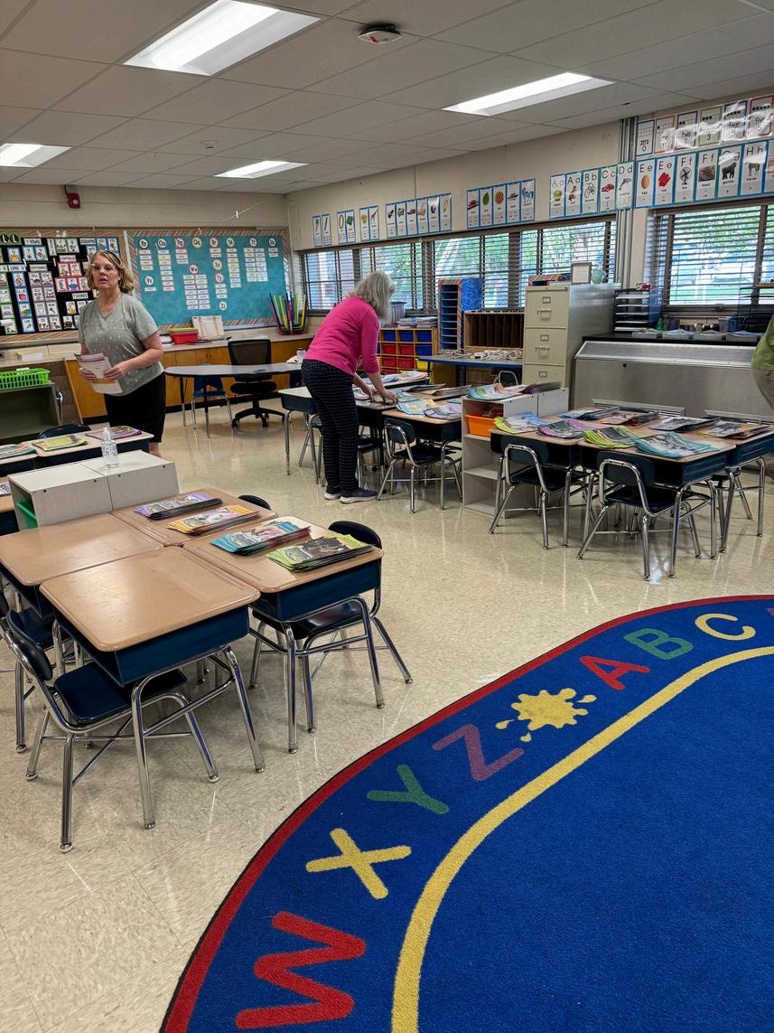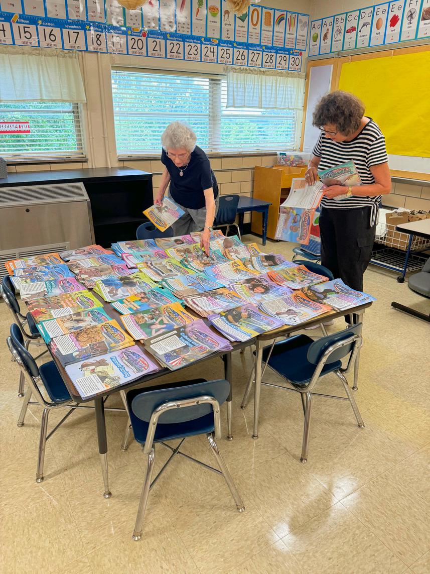 Indoor work included providing materials for and assembling homework kits for 40 kindergarteners, separating and assembling workbook packets, dusting, cutting laminated materials for classroom use, and writing cards of encouragement to each of the 50 staff members at West View. A pre-workday activity was painting in the girls' and boys' restrooms (thank you, Doug Barbour). There was plenty for everyone to do and A LOT GOT DONE.