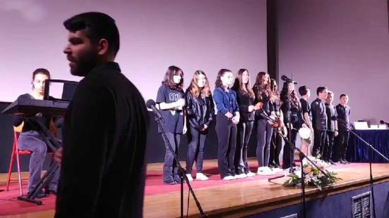 Φωteen ά Πρόσωπα Ετήσια Έκδοση 2ου Γυμνασίου Καματερού, Μάιος 2024, Τεύχος 3 16 Σχολικός εκφοβισμός – Δράση Μαρτίου , ημέρα του σχολικού εκφοβισμού. Ένα θέμα που απασχολεί γονείς, δασκάλους, παιδιά , αλλά και όλη την κοινωνία. Τι μπορούμε να κάνουμε; Το κυριότερο είναι να μιλάμε. Να μιλάμε φυσικά με ανθρώπους που εμπιστευόμαστε αλλά και με ειδικούς. Η αγωνία και ο προβληματισμός μας έγινε τραγούδι. Ένα τραγούδι με τίτλο ¨Μίλα τώρα¨ σε στίχους της καθηγήτριας μαθηματικών Μαντόγλου Άννας και μουσική του καθηγητή μουσικής Σουλτάνη Ευστάθιου και της χορωδίας του σχολείου. Στις 31 Μαρτίου το τραγούδι παρουσιάστηκε στον κινηματογράφο Μαρία- Έλενα , μια ημέρα αφιερωμένη στον σχολικό εκφοβισμό , που διοργανώθηκε από τον Δήμο Αγίων Αναργύρων –Καματερού με συμμετοχή πολλών σχολείων του Δήμου μας. Ακολουθούν οι στίχοι του τραγουδιού και μερικές φωτογραφίες από την εκδήλωση αλλά και από το σχολείο που πραγματοποιήθηκε η δράση 6