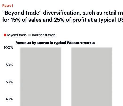 Consider “beyond trade” expansion. More and more, retailers are diversifying from traditional buying and selling of goods, gaining access to new profit pools in areas such as retail media, third-party marketplaces, financial services, and logistics.