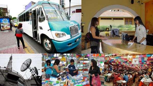 Se refiere a todas las actividades, que no producen mercancías o bienes tangibles, pero que son necesarias para el normal funcionamiento de la economía. Entre estas actividades está el comercio, los restaurantes, los hoteles, el transporte, los servicios financieros, las comunicaciones, los servicios de educación, los servicios profesionales, las actividades del Gobierno, entre otras.