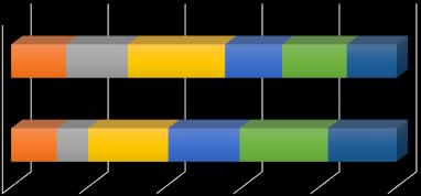 Si las variables �� �� �� son cualitativas, se pueden hacer varias representaciones gráficas, dependiendo de que se quiere representar. Por ejemplo, si queremos representar: la distribución de uno de ellos respecto del otro o la distribución total de cada uno de ellos, se pueden usar las ya conocidas barras proporcionales.