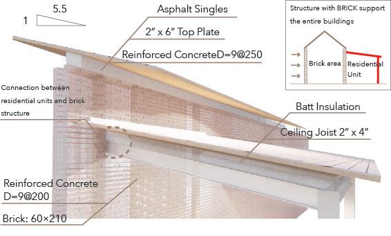 The brick features high heat storage capacity. Historically, bricks have been used in warehouses and fireplaces in Japan. Considering the competition theme, ‘Urban Assets in 100 Years,’ we are focusing on the topic of ‘asset preservation.’ Each residential unit sandwiches a public area where assets such as wire, sake, and paintings are preserved by the residents.