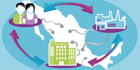Los bienes y servicios que se producen en la economía de un país, se relacionan entre sí al sector productivo y a la economía familiar La economía familiar proporciona a las empresas el capital y la mano de obra necesarios para producir los bienes y servicios que demandan Las empresas pagan, por los factores de producción, salarios y otras rentas a las economías domésticas que éstas emplean para el consumo. por su parte el gobierno recauda impuestos sobre esos bienes y servicios producidos por la totalidad de la sociedad para invertirlos en pago de funcionarios y empleados públicos, infraestructura, educación, salud, jubilaciones y seguridad nacional, entre otros. El gobierno está destinado a influir sobre la marcha de la economía mediante varias medidas diseñadas en su conjunto, los impuestos estatales y municipales que servirían para mejorar el crecimiento y desarrollo rural y regional.