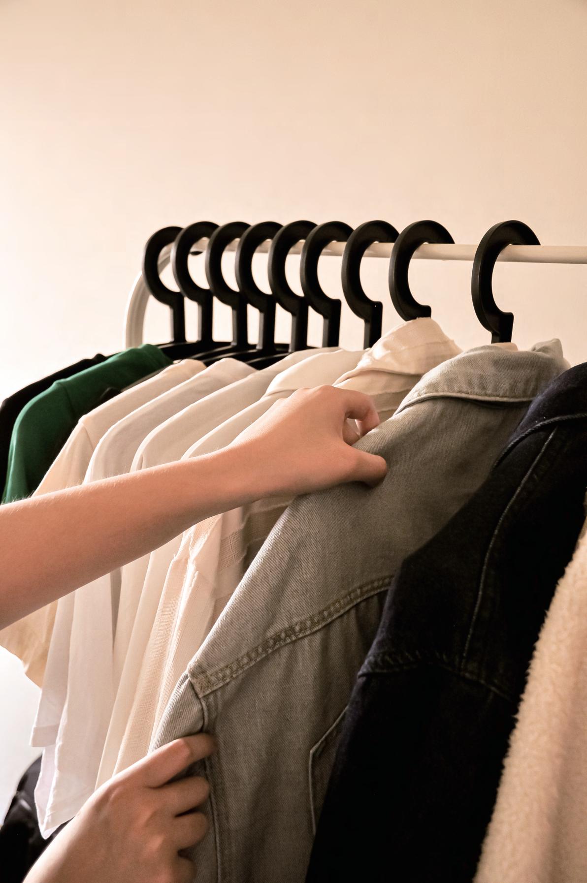 衣櫃的部分選擇抽屜式的收納櫃,收納乾淨衣物時 也能將衣物分類,另外也加上了直立式衣架,收納 外套及版型較長的衣物。