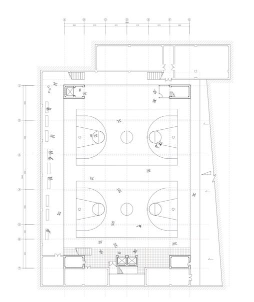 In order to connect the city and the community, it was considered to elevate the whole building and support it with four cores, and the ground floor was sunk as a wind and rain playground to connect the community and the city, which not only limited the boundary of the site but also formed a continuous space. The upper level is centred on the swimming pool, with other functions distributed around it in a U-shape, creating a visual exchange and breaking up the independence of each part. The roof garden retains the trusses with a touch of industrial romance. The urban façade slopes downwards and uses a metal curtain wall as the image of the building to represent the school, while the community façade is relatively relaxed welcoming the residents and students of the neighbourhood to enter. The entire building creates a sense of floating above the city.