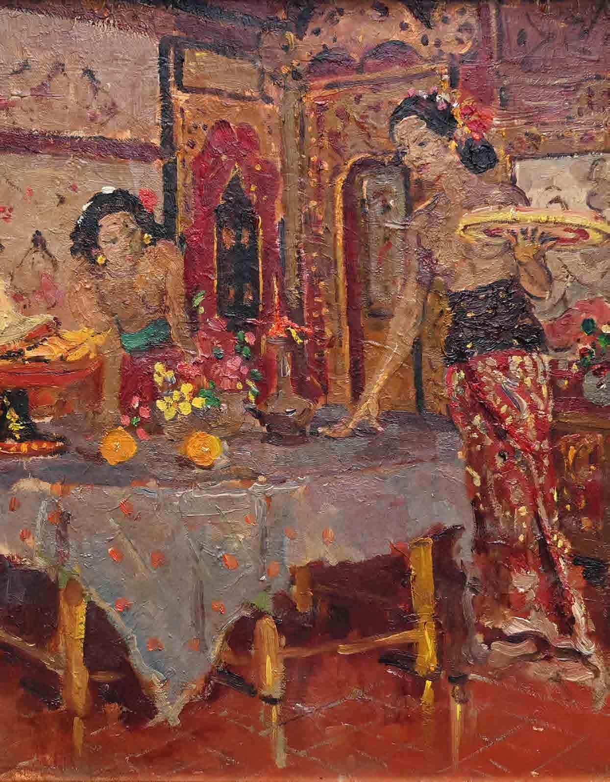 Lot 20 Balinese Weavers Le Mayeur Lot 15 Two Women in an interior, Sanur