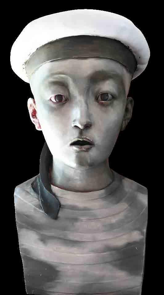 《儿童水手》是根据张的想象力创作的 水手孩子的彩绘青铜半身像 ; 没有使用 真人模型。张说,他的肖像雕塑是他 的“理想主题”。这件作品与他的血脉 绘画系列有相似之处。这尤其可以通过 雕塑的黑色大瞳孔看到。 Artwork