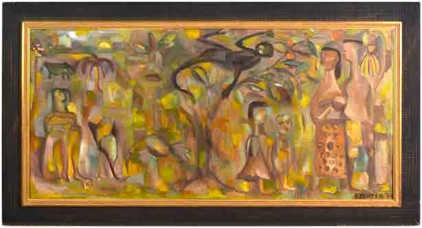 with inscription "Mexico Scene" by Sudjana Kerton 1963 Attested to by (signature) Lousie Kerton verso oil on canvas 51 x 66 cm ; 86 x 101 cm (with frame) SGD 10,000 - 15,000 USD 7,250 - 10,870