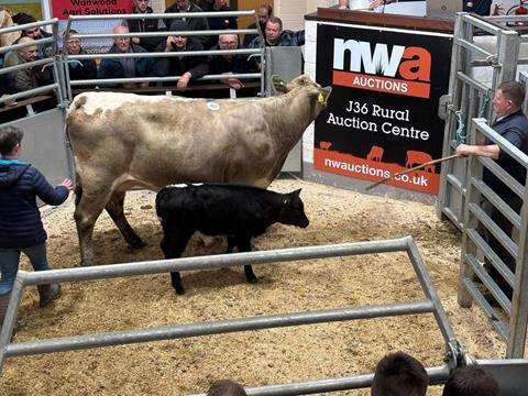 The collective sale of Beef Breeding cattle saw AF & BA Dawson sell a Charolais x heifer with Aberdeen Angus x calf achieve £2800, British Blue