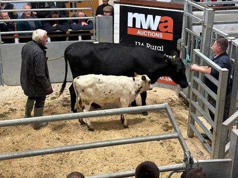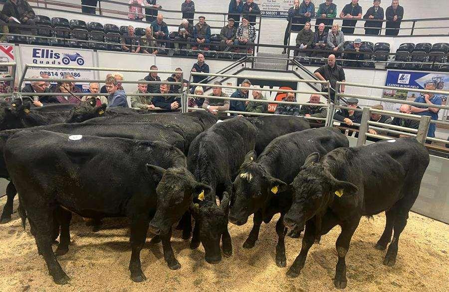 A handful of weaned calves forward with an eye catching British Blue cross from JS&KM Wilson & Son achieved £1125. Aberdeen Angus cross steers from AJ Lyons sold at £935, with heifers from the same home £790.