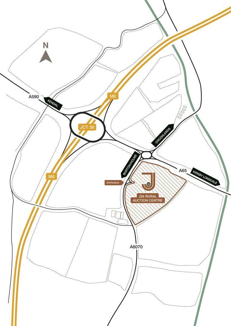 From the South & North exit the M6 at Junction 36 and follow signs for Kirkby Lonsdale. At the roundabout take the third exit signposted Holme & Burton and the Auction is immediately on your left. From the East follow the A65 through Kirkby Lonsdale and towards the M6, at the first approach take the first left on the roundabout signposted Holme & Burton and the Auction is immediately on your left. For Sat Nav please use the Postcode LA7 7NU