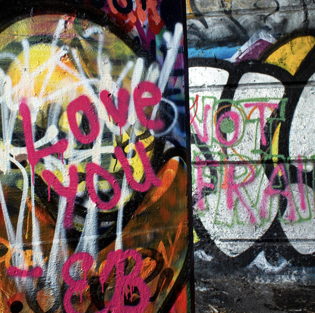 At the river’s edge, a once–spurned place is now embraced: In a rough, uncurated way, it screams love. And so does the several bodies of delineated form that span the area. But the relentless beating of spray paint and foot traffic—that’s a form of love. The wear is proof of repeated return, and every hidden layer of pigment is a record of presence. We keep coming back to the river because that accessibility lets us. S
