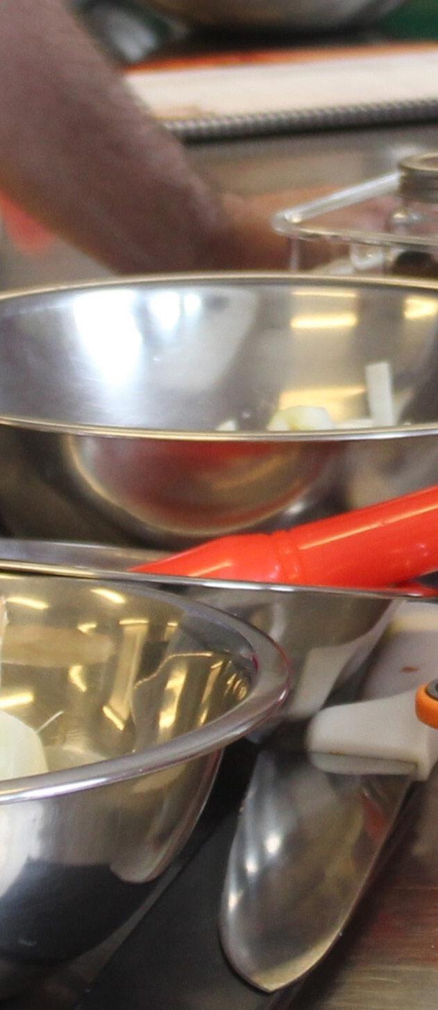 During the second week and the first half of the third week, the three of us get together to R&D all of our dishes and see how they turn out. We're all seniors, so we have our own kitchens to experiment with the dishes. Once we're happy with the dishes, or once we've decided to kind of revamp the menu, we do a lot of grocery runs and also purchase any special plating, tableware, or decor. That's when it all comes together. The day or two days before is when we'll start prepping, which is done in a lot of different places. We try to prepare as much as possible, that way, through dinner service, we can be very quick between our dishes and have no downtime.