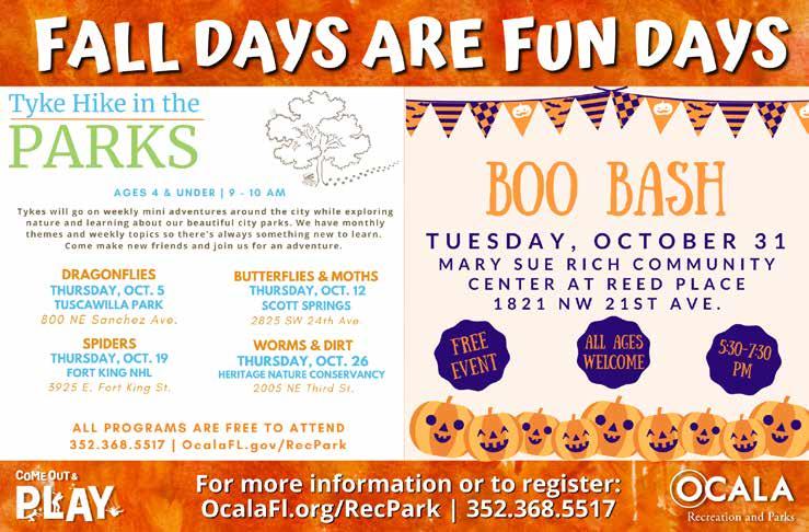 VOLUME 5 NO.01 352 PREVIEW OCALA’S GUIDE TO ENTERTAINMENT, NIGHTLIFE & FAMILY FUN 10.23 CORN MAZES, PUMPKIN PATCHES & FRIGHTFUL, FALL FUN FOR ALL utumn dventures A